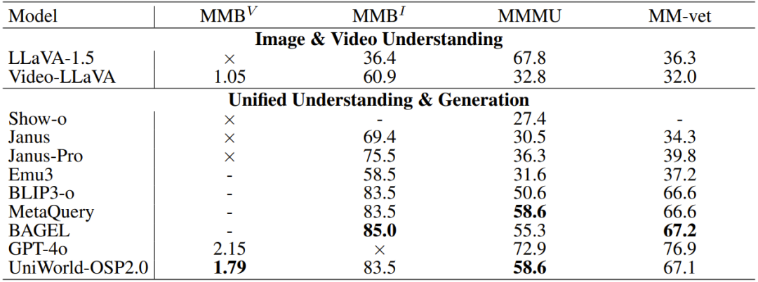 在关键评估指标上的对比中,UniWorld-OSP2.0在运动质量、图像保真度和语义一致性方面均表现出优越性,其整体表现已稳步进入开源阵营第一梯队。