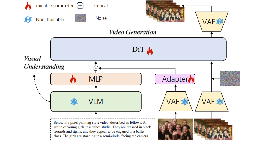 这种设计让模型直接继承了VLM强大的视觉基础知识,大幅提升了对角色、动作等细粒度信息的控制精度,让模型真正具备了「看懂」复杂场景的能力。