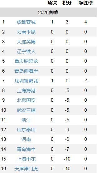 中超联赛赛一场,积分榜榜首和榜尾差距已达13分!! 中超联赛仅仅赛了一场,但积分榜已经差距巨大! 成都蓉城5:1战胜深圳新鹏城,这场比赛让很多人意难平!很多人认为这场比赛的裁判判罚问题不小,不少球迷认为深圳队是10人对阵14人,认为深圳新鹏城输的冤! 顺利拿到3分的成都蓉城,已经积分领先联赛积分榜最后一名13分! 2026赛季成为了“填坑赛”,9支俱乐部被罚分,最高的上海申花、天津津门虎联赛-10起步。所以仅赛一场的成都蓉城已经在积分榜遥遥领先。 就是因为9支俱乐部被罚分。所以今年的联赛中有不少俱乐部已经早早的退出了争冠行列,比如上海申花,-10分的差距,让他们今年几无可能争冠;就连-5分起步的上海海港要想夺冠都是困难不小,反倒是正常0分起步的成都蓉城今年夺冠的可能性很大! 联赛第一场比赛,转折点就是姜志鹏的红牌,不用去争论是不是该给红牌了,也不用争论姜志鹏年年联赛都得红牌所谓的恶人行径该不该讨伐,更应该深思的是中超有很多球员有不少习惯性动作,这些动作很隐蔽,但却伤害性不小,韦灵顿被上肘子了,肘击本身就是一个坏习惯,而且看发力方向和发力的力量,很有故意嫌疑,给红牌一点不过分,但却有很多球员转行当教练以后却把这些行为交给小球员。 曾经亲自经历过一个场景:在场边看小孩子训练的时候,一个还曾经在职业球队踢球转行的教练给小孩子们说:“这一下一定要狠,哪怕踢不到球,也要狠,让对方害怕,即使踢到人,也只能算是正常的抢球不用承担后果的......” 说老实话,听了这些话,真的有些后背发凉,能这么教小孩子吗? 姜志鹏这个动作很隐蔽,如果不是VR介入,很可能就过去了。但这个动作透露出来的问题却不小。想起曾经看过一个视频,全国U15联赛,一个教练在场下喊“踢不着球能踢着人不?”“他再过你你就踢他!”,这还是全国联赛呢,你说这样的教练会教出来什么样的球员。 有很多老油条球员、恶习球员,真的不能从事青训,他们大概率会教坏孩子的!