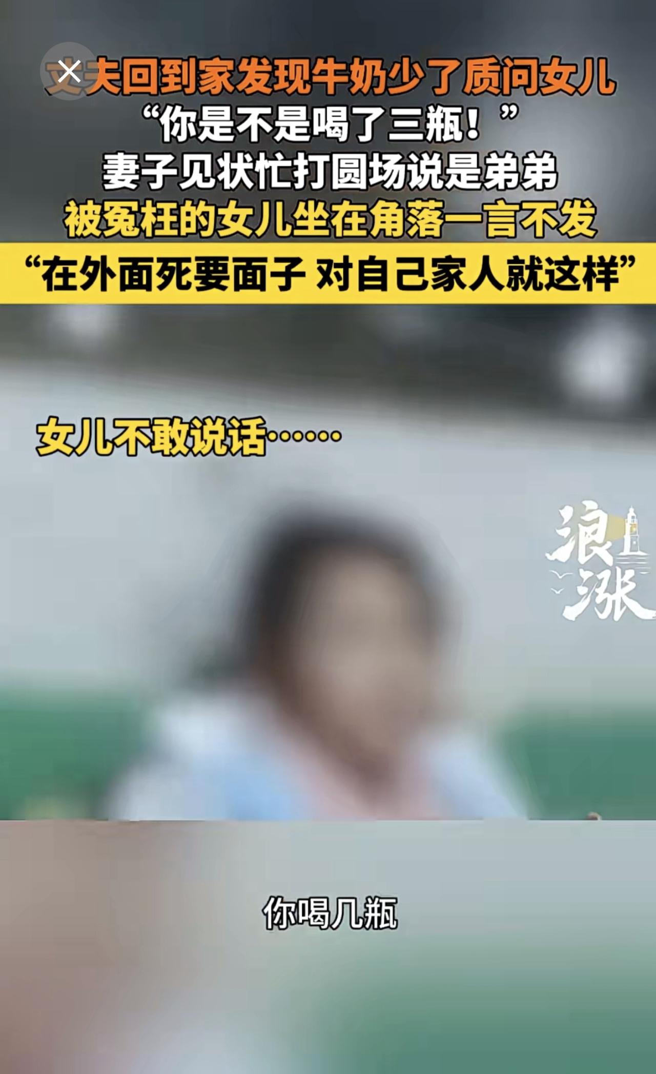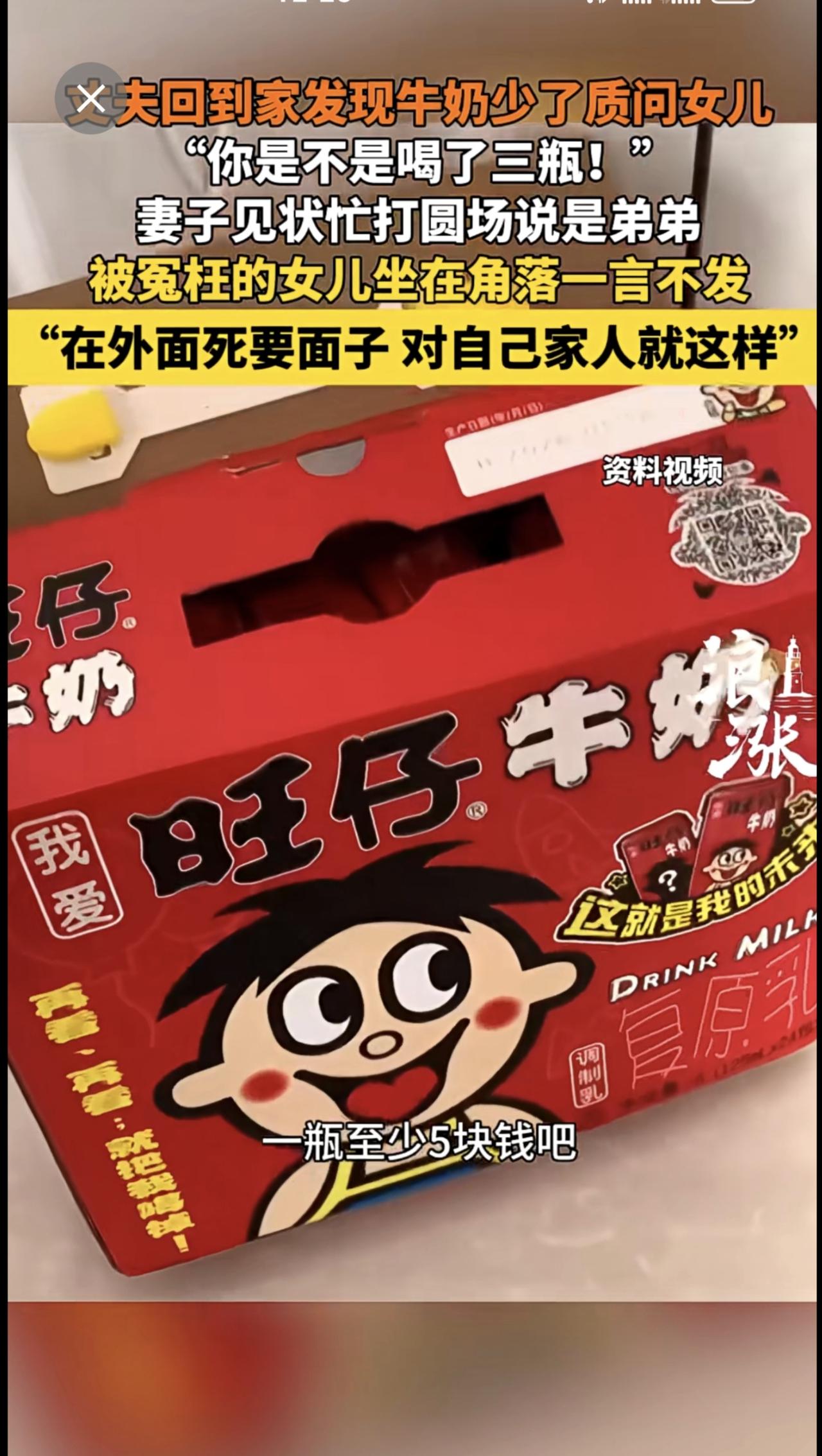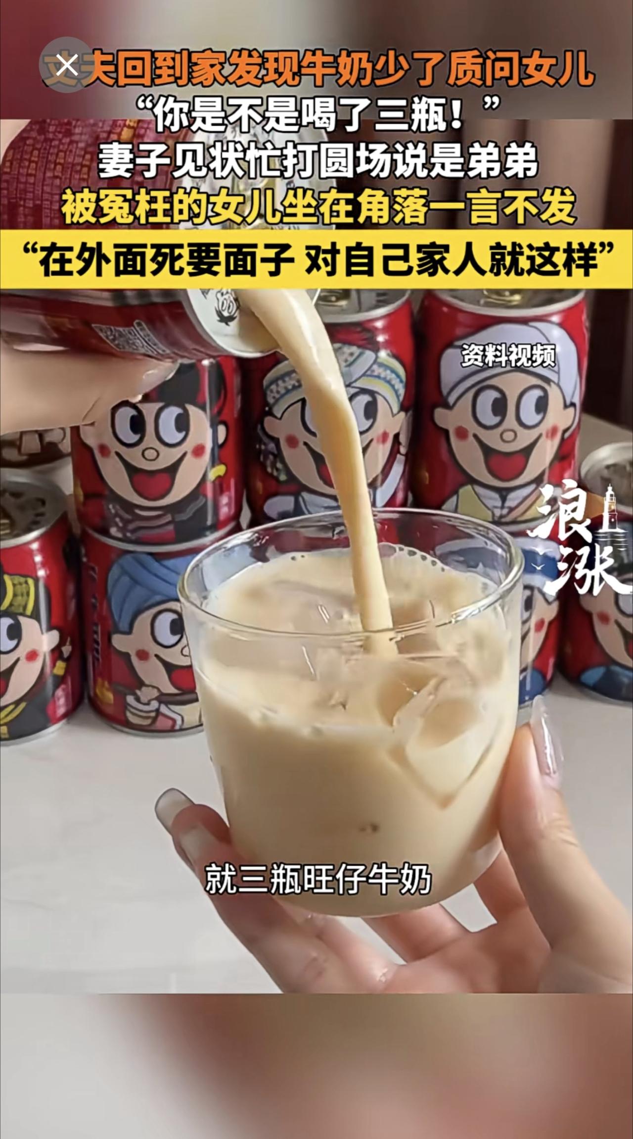 男子因家中牛奶少3瓶连声质问女儿。来源:青岛新闻网