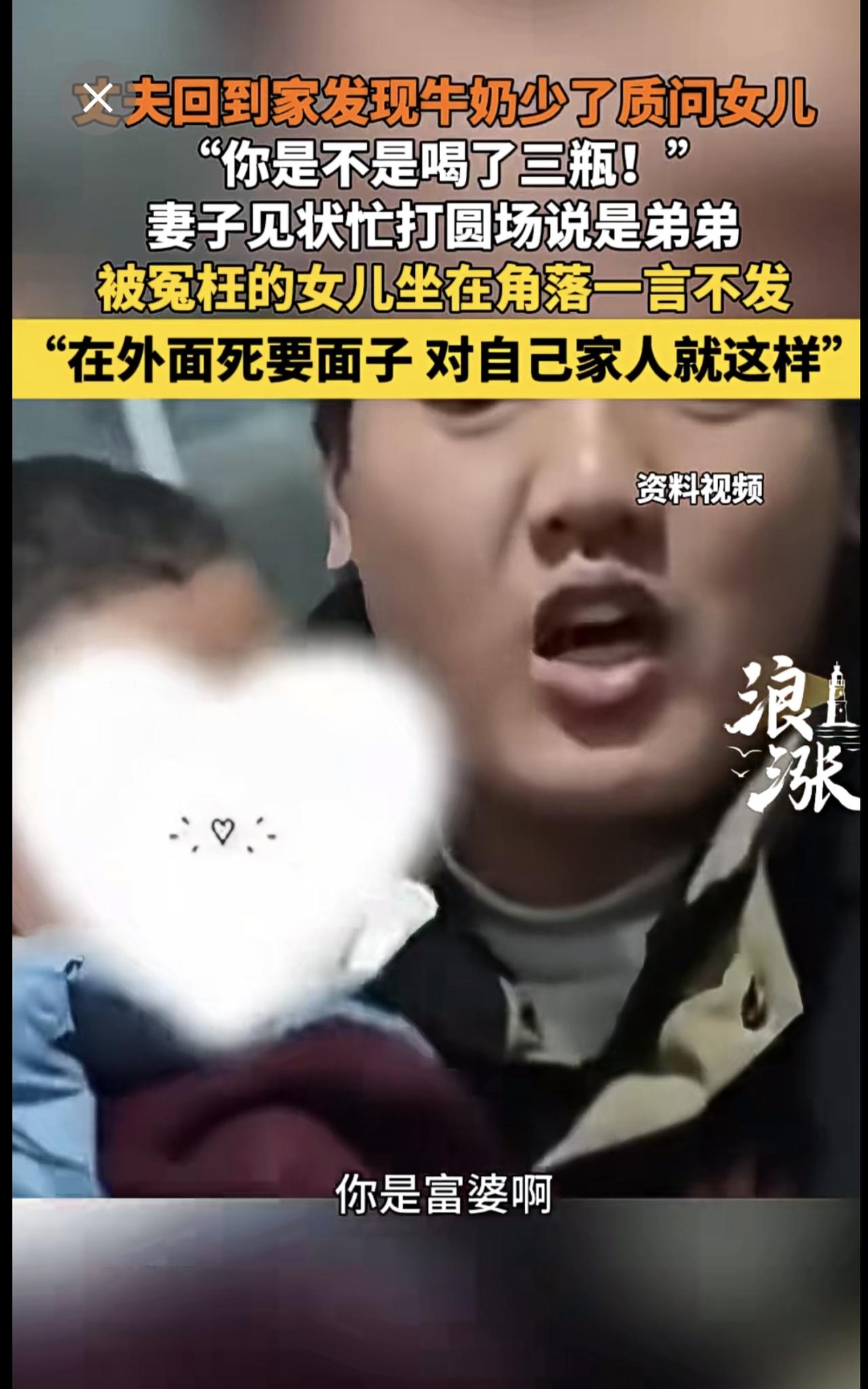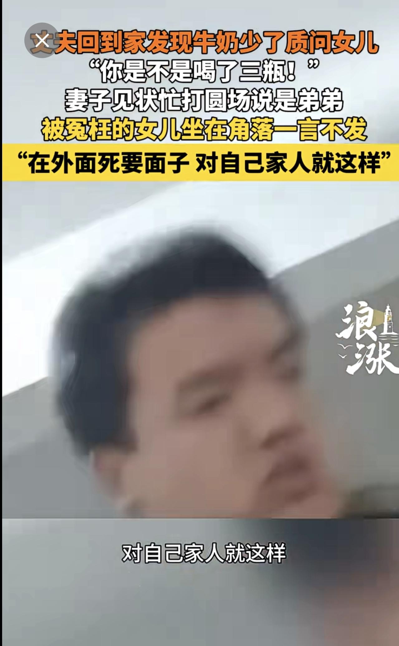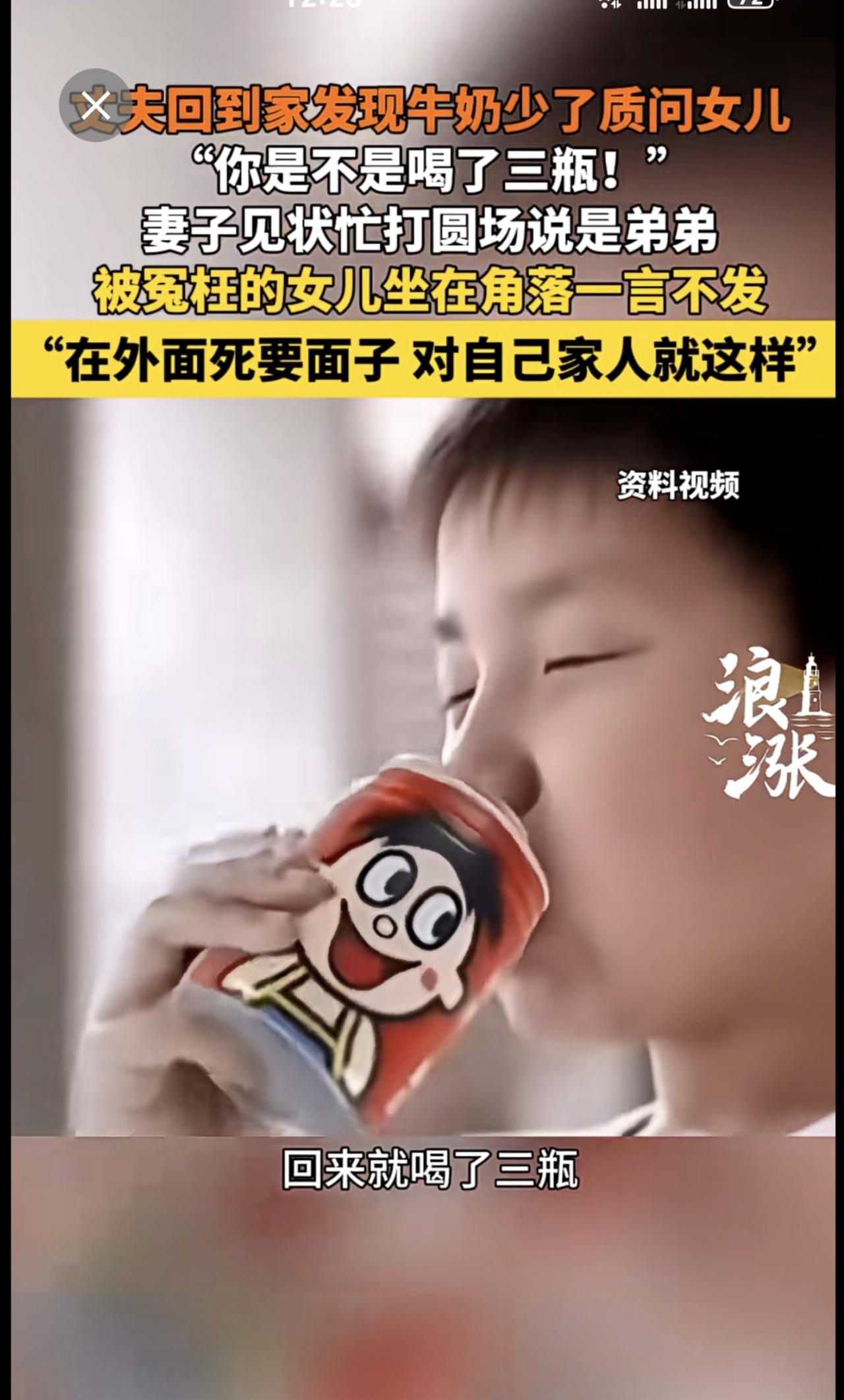 男子因家中牛奶少3瓶连声质问女儿。来源:青岛新闻网