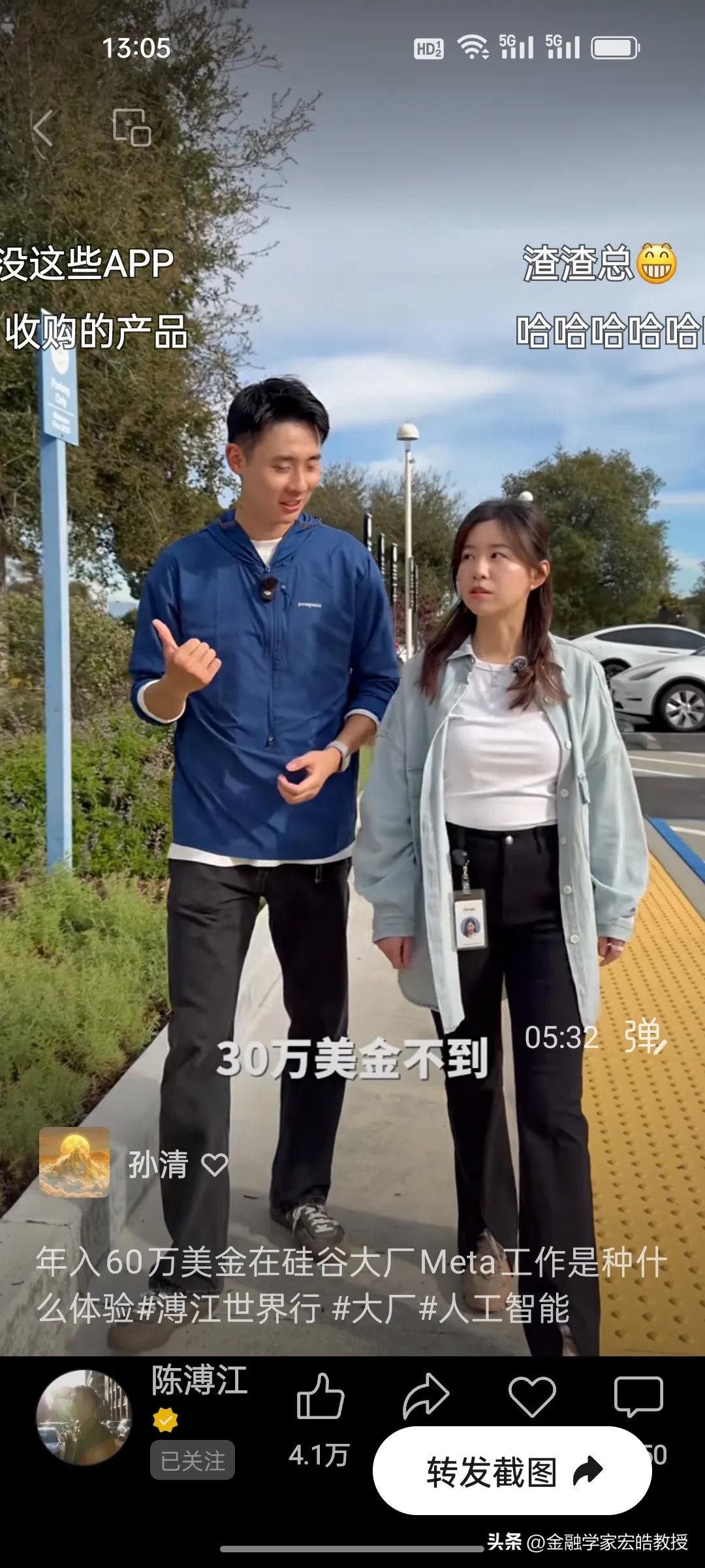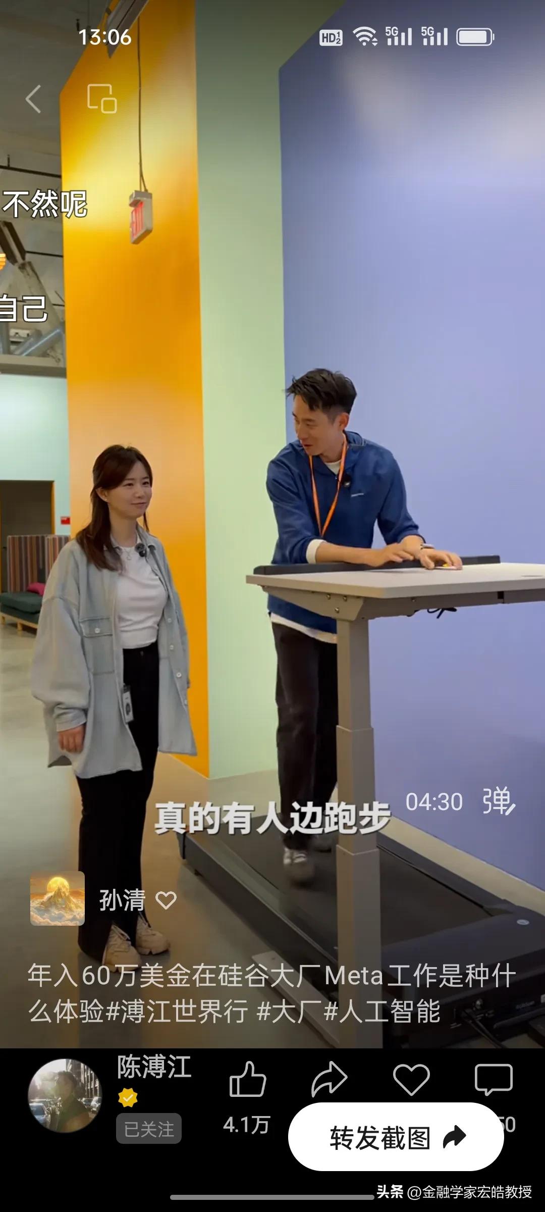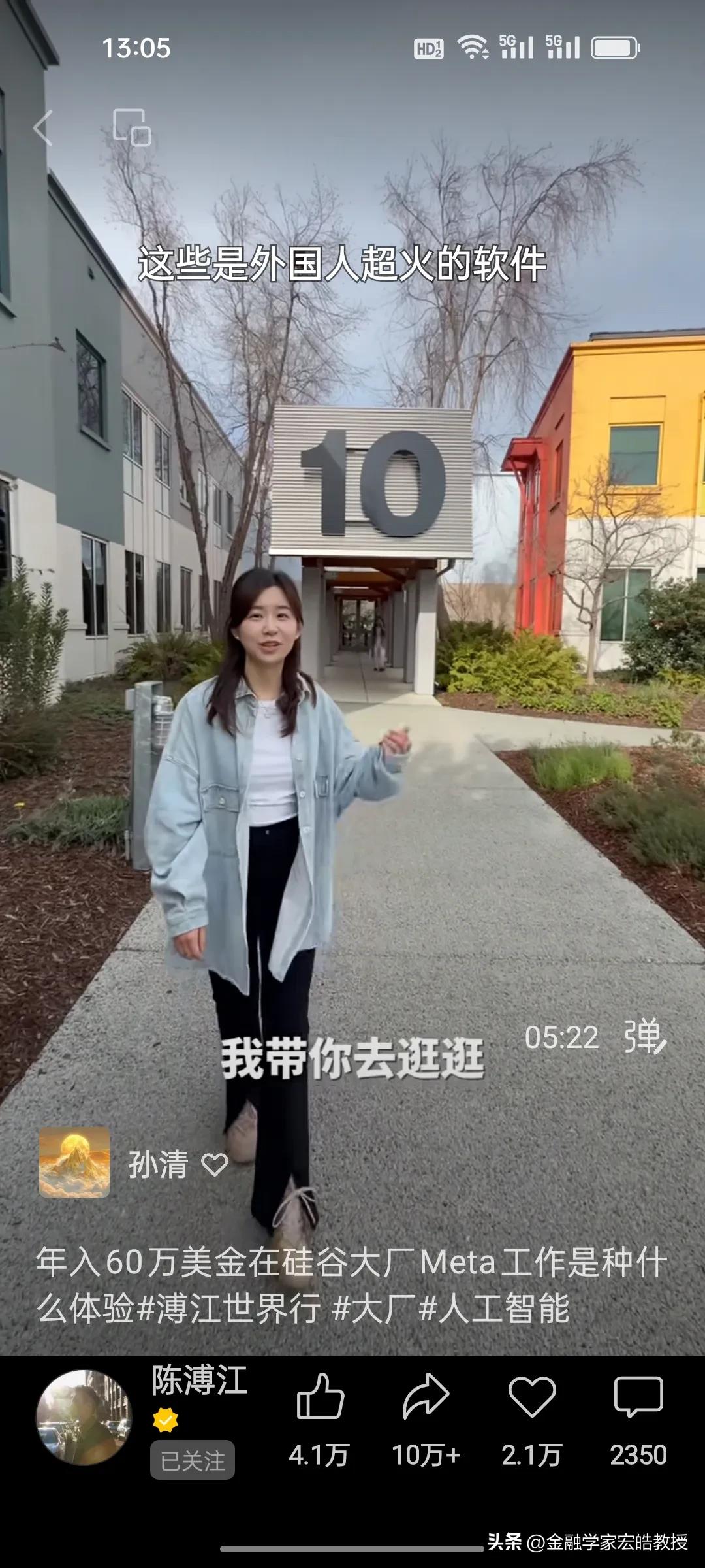 在Meta工作了四年的普渡大学博士生一年能赚多少钱? 刚刚看到陈溥江采访了一位在Meta工作了四年的女孩,她是复旦专业第一毕业的高材生,普渡大学全奖博士,在Meta工作了四年,做机器人视觉,年薪从第一年的30万美金到如今的60万美金,她直言工作压力比较大,每天从早上十点工作到晚上11点,要工作13个小时,公司的跑步机上都有工作板,方便员工一边跑步一边敲代码。但是她说现在的AI时代,其实是人人都可以参与的,降低了门槛,很多不懂技术的人都在用AI赚钱。 看了陈溥江采访多位在谷歌,Meta工作的中国人,统一的观点就是工作压力大,但是年薪都在30万美金以上,其实这个薪资跟中国大厂的顶尖人才差不多。目前AI发展时间短,需求人才很多,这个薪资也属于正常水平。不过在中国赚200万比美国性价比高很多。
