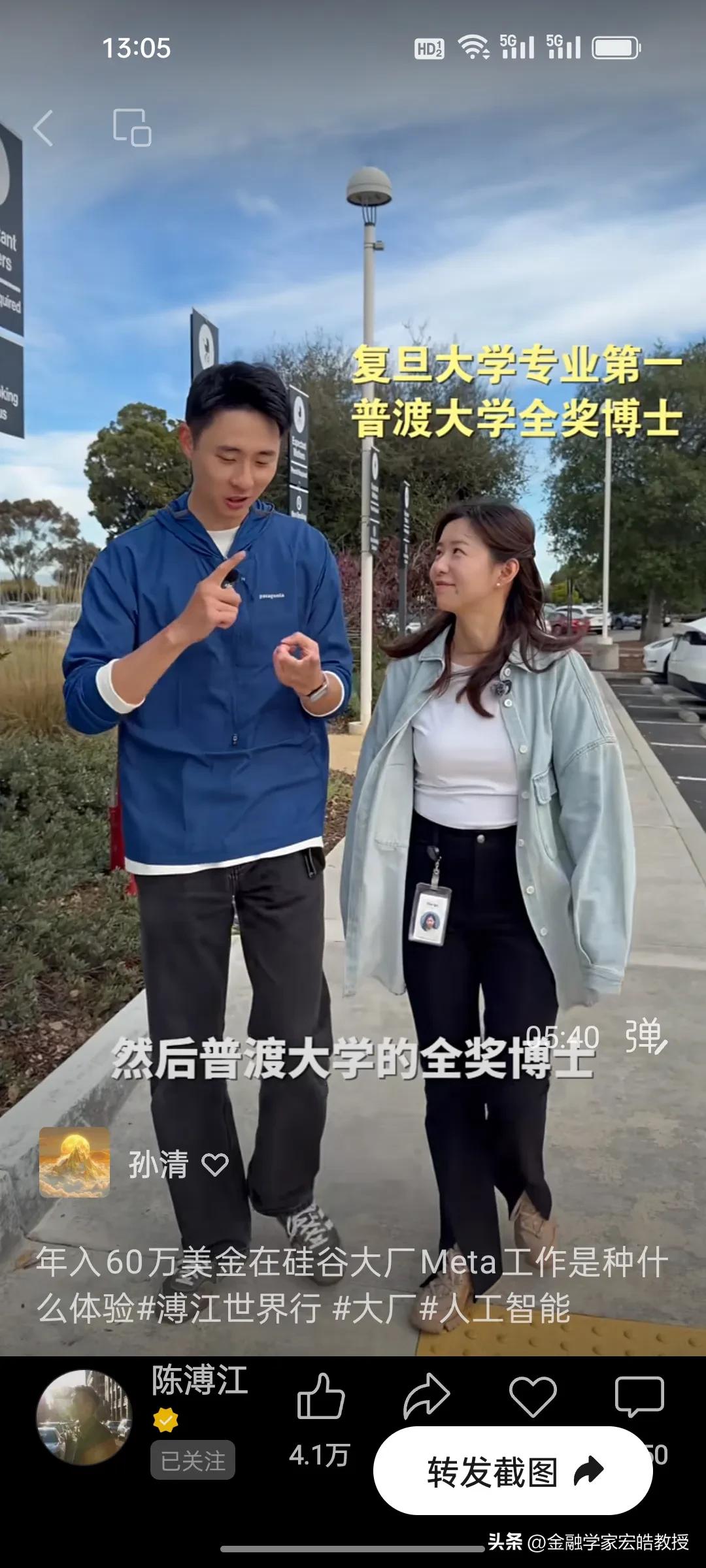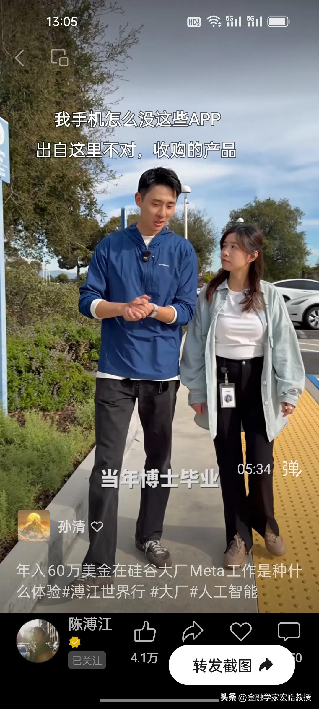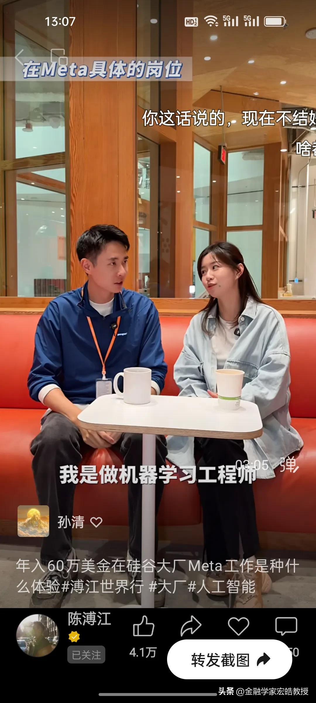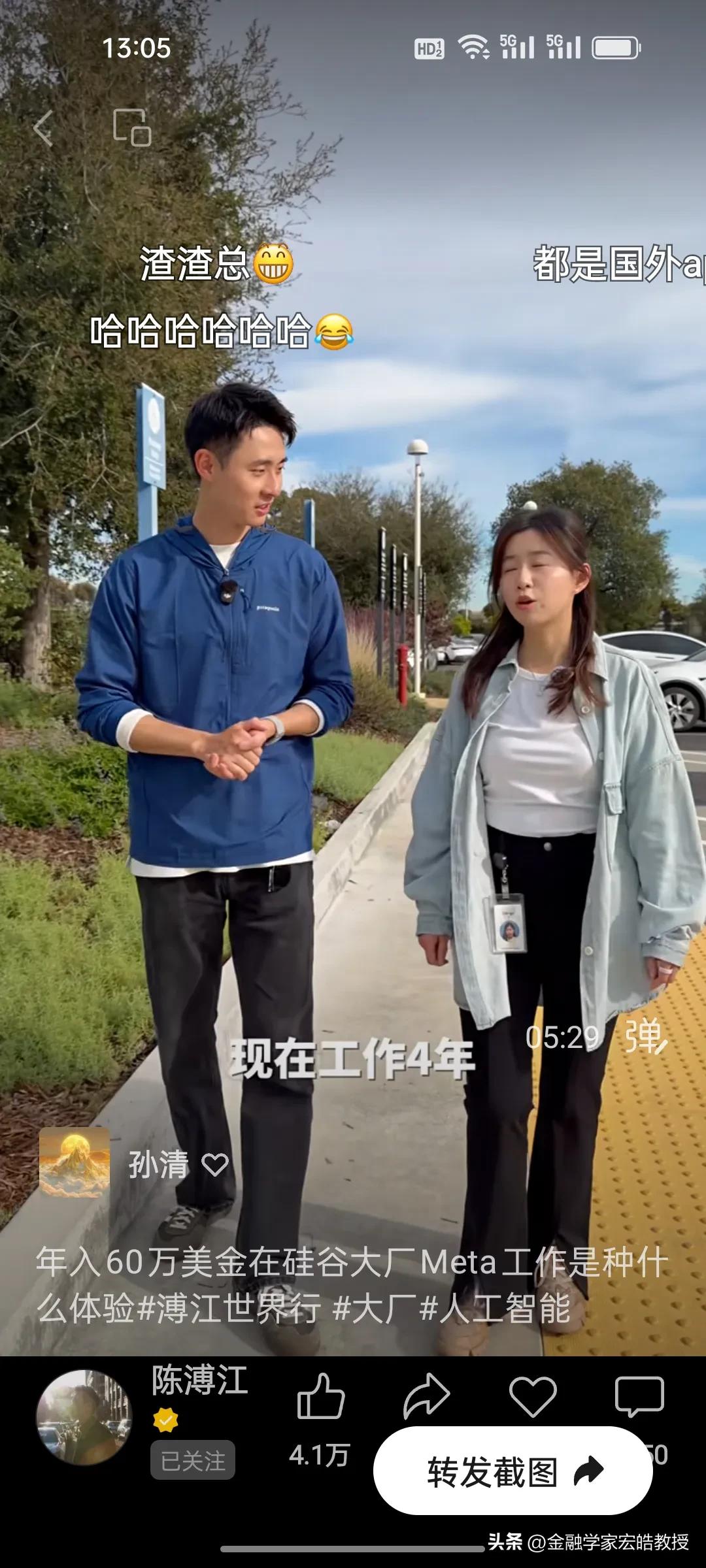 在Meta工作了四年的普渡大学博士生一年能赚多少钱? 刚刚看到陈溥江采访了一位在Meta工作了四年的女孩,她是复旦专业第一毕业的高材生,普渡大学全奖博士,在Meta工作了四年,做机器人视觉,年薪从第一年的30万美金到如今的60万美金,她直言工作压力比较大,每天从早上十点工作到晚上11点,要工作13个小时,公司的跑步机上都有工作板,方便员工一边跑步一边敲代码。但是她说现在的AI时代,其实是人人都可以参与的,降低了门槛,很多不懂技术的人都在用AI赚钱。 看了陈溥江采访多位在谷歌,Meta工作的中国人,统一的观点就是工作压力大,但是年薪都在30万美金以上,其实这个薪资跟中国大厂的顶尖人才差不多。目前AI发展时间短,需求人才很多,这个薪资也属于正常水平。不过在中国赚200万比美国性价比高很多。