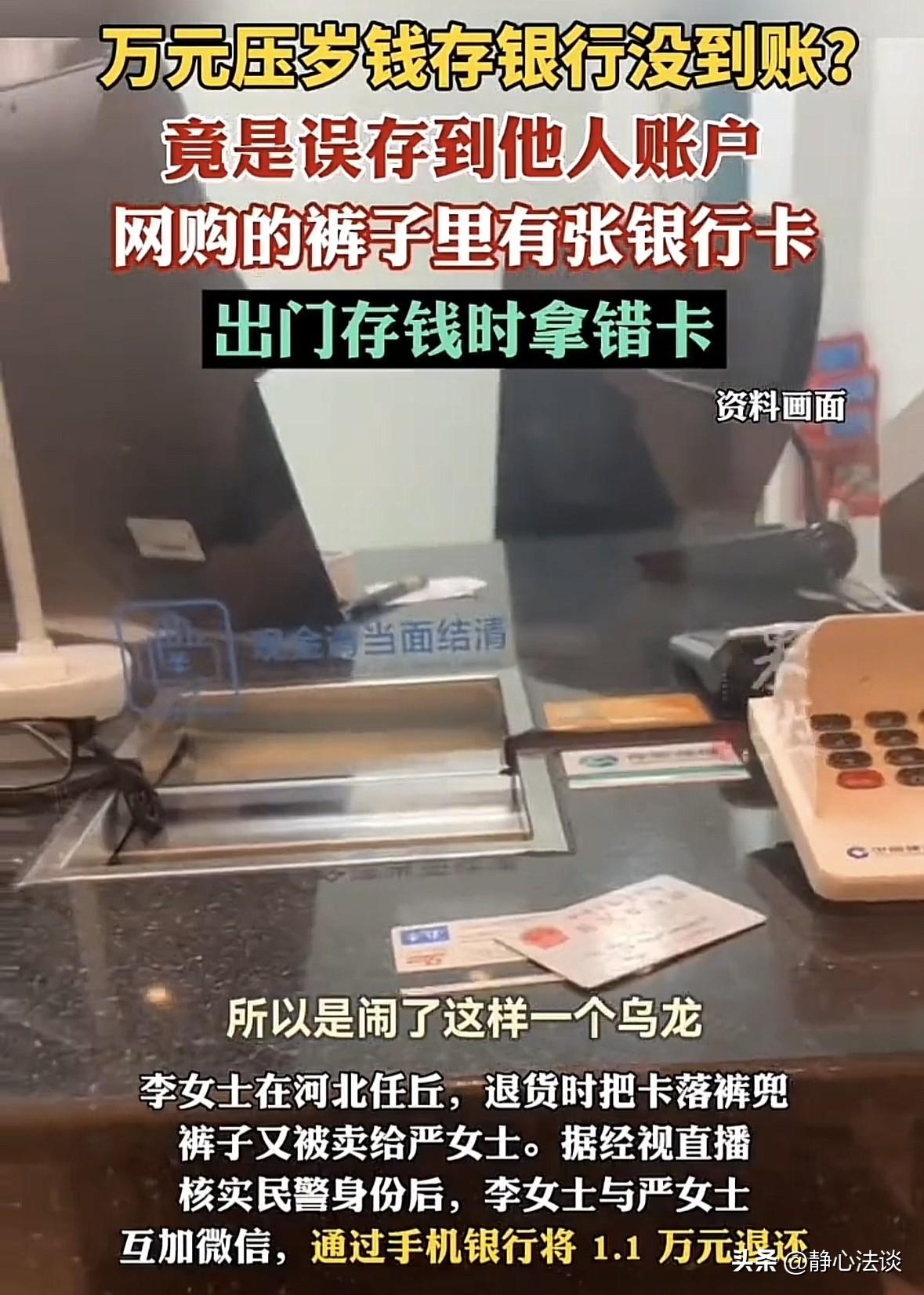 武汉市民严女士近期遭遇了一场意外的存款风波,将春节收到的1.1万元压岁钱误存入陌生账户,这场看似离奇的乌龙事件,源头要追溯到两年前的一次网络购物,相关经过在网络传播后,引发大量网友对消费安全与金融操作的讨论。 两年前,严女士通过网络平台购买了一条裤子,拆开快递检查时,在裤子的口袋里发现一张不属于自己的银行卡。她当时判断这张卡片是前一位买家退货时不慎遗留,商家未做细致检查便重新上架销售,因为没有遇到类似情况,也未造成直接影响,她便将这张陌生卡片随手放在家中,没有进行销毁或上交处理。 时间来到春节假期,严女士收到长辈给予的1.1万元压岁钱,打算存入银行保管。她先来到银行自助设备办理存款,机器提示交易异常无法完成,便转而前往柜台办理。她拿出随身携带的银行卡,完成现金提交、单据填写与签字确认等全部流程,本以为存款已经顺利到账。 事后严女士查询个人账户余额,却发现账户金额没有任何变化,反复核对交易记录依旧没有相关信息。在银行工作人员的提醒下,她仔细查看手中的卡片,才发现自己使用的并非本人银行卡,正是两年前从网购裤子口袋中发现的那张陌生卡,因为两张卡属于同一家银行,外观样式高度相似,匆忙间未能分辨,才导致钱款误存。 发现问题后,严女士十分焦急,在银行工作人员的陪同下前往辖区派出所报警求助。民警接到求助后,立即通过银行系统查询卡片持有人信息,几经周折联系上远在河北任丘的李女士。 李女士得知情况后十分意外,回忆后确认这张银行卡是自己此前退货时遗落在裤子口袋中,后续未再关注卡片去向。核实账户信息后,她确认1.1万元已成功到账,随即通过线上转账将钱款全额返还给严女士,这场存款乌龙得以圆满解决。 类似的网购商品遗留物品情况并非个例,国内多地消费者都遇到过相近经历。山西一位女子网购冲锋衣,在口袋中发现他人身份证;嘉兴一名消费者退货时,将车钥匙遗落在衣服口袋,商品二次销售后无法找回;还有消费者在直播间购买的衣物中,发现卫生纸、发夹等杂物,这些情况都源于商家发货前未做全面查验。 部分电商平台的退货商品,在回收后未经过清洁、检查、整理等规范流程,便直接重新打包销售,既侵害了消费者的知情权,也容易埋下各类安全与财产隐患。因拿错银行卡、输错卡号导致钱款误存的情况也时有发生,当事人大多因操作匆忙、卡片外观相近未做核对,将工资、积蓄等资金转入陌生账户。遇到此类情况,无需过度恐慌,保留好存款凭证、交易记录等材料,及时联系银行与警方,大多能通过合法途径追回资金。 我国民法典中有明确的不当得利相关规定,没有合法依据取得不当利益,造成他人损失的,应当将所得利益返还。这一规定为误存资金的追回提供了法律支撑,国内多地法院在审理同类案件时,均判决收款方返还误存钱款。 这场事件也为大众日常消费与金融操作带来多重提醒。收到网购的衣物、箱包、背包等物品时,无论商家标注全新还是二手,都应当第一时间检查口袋、夹层、内衬等位置,及时清理遗留物品,避免混淆或丢失。遇到陌生的银行卡、身份证、证件卡片等物品,不要随意存放或擅自使用,可交由银行网点、派出所等专业部门处理,降低财产纠纷风险。 在银行办理存取款、转账业务时,要养成核对卡片姓名、卡号的习惯,确认信息无误后再进行操作,从源头减少失误。电商商家也应完善退货商品处理流程,增加验货、清洁环节,避免遗留他人物品,减少消费纠纷。 这场由网购遗留卡片引发的存款乌龙,最终在双方诚信配合与警方、银行协助下妥善解决,没有造成财产损失。事件看似充满巧合,却折射出消费查验、物品管理、金融操作等多个生活环节的细节重要性。 注重日常小事的规范处理,既能避免不必要的麻烦,也能守护自身财产安全,让消费与金融活动更加安心顺畅。