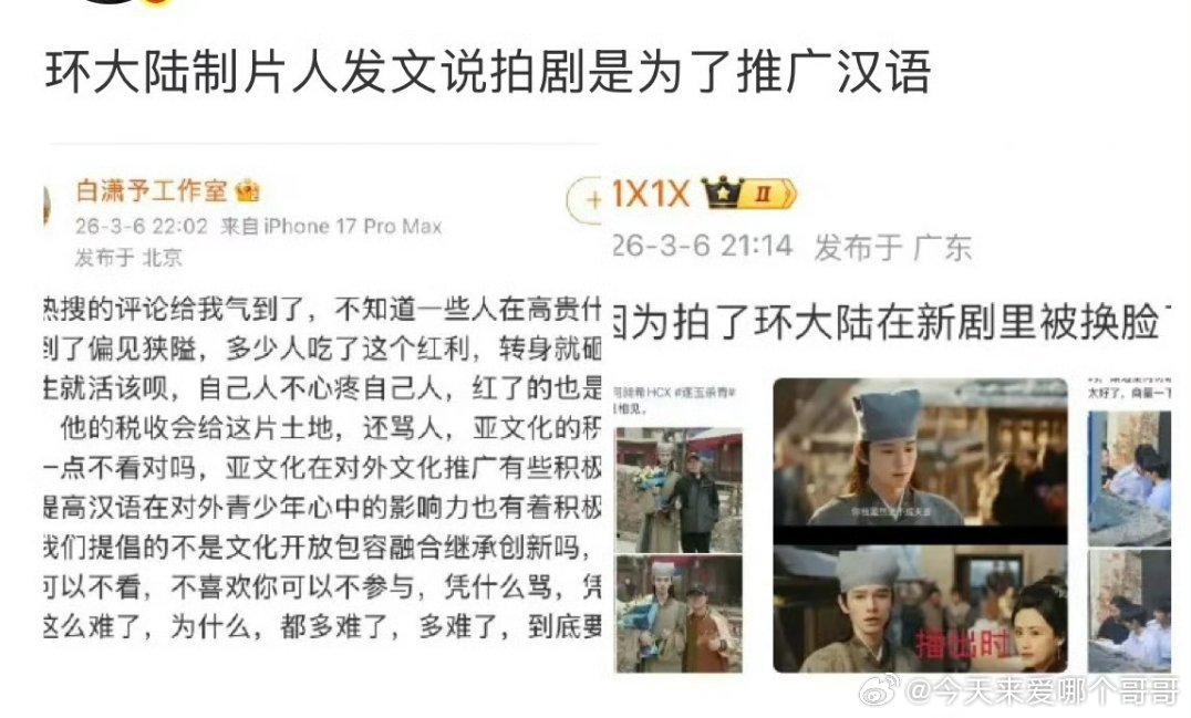 环大陆制片人骂网友不知道心疼自己人,演员演环大陆红了能增加税收,提高汉语的世界影