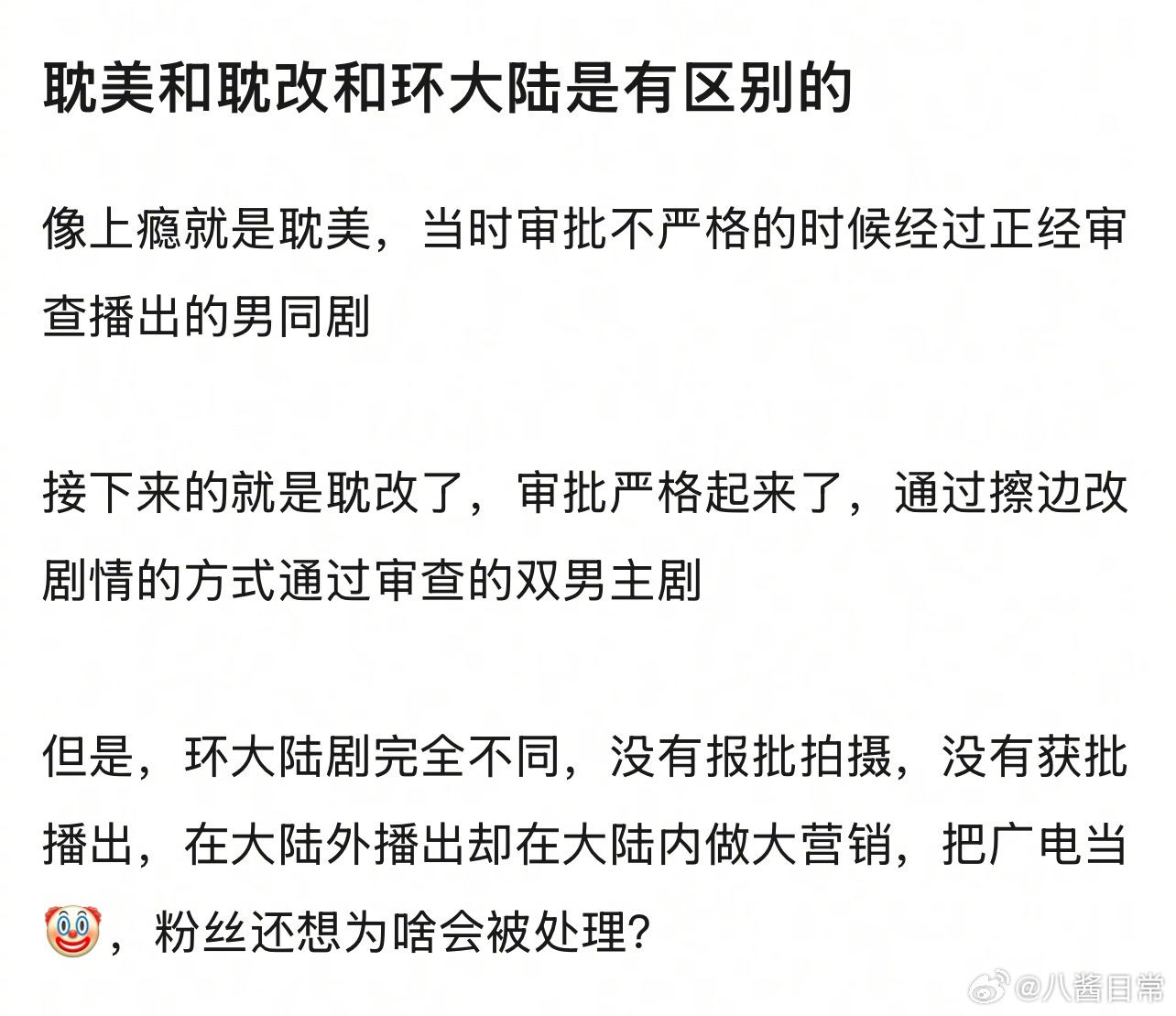 耽美、耽改、环大陆的区别