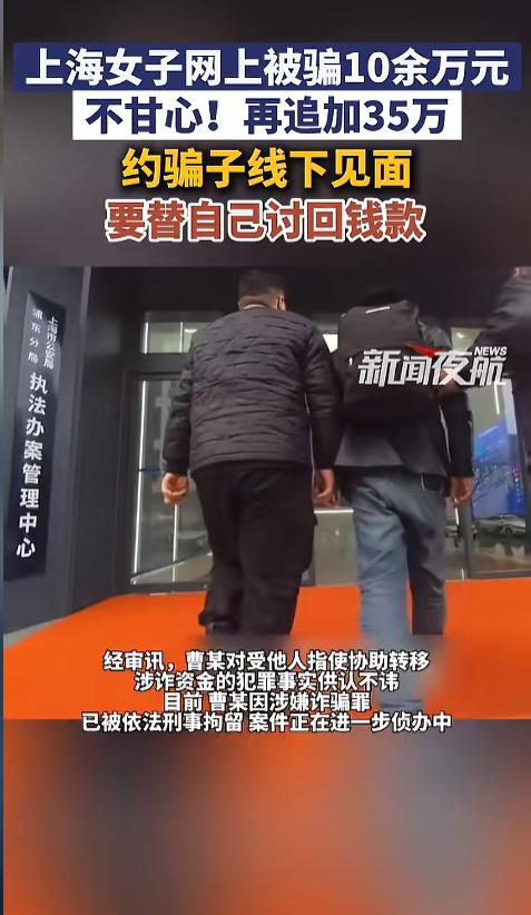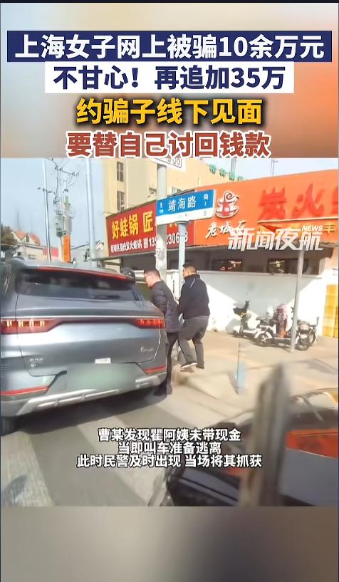 “魔高一尺道高一丈!”近日,上海,一女子在理财软件上亏损了十万元,察觉到自己遭受电信诈骗后,心情十分的不爽,一心想要自己找回场子。她假意跟骗子说想继续追加35万,但是得线下交易,想以此来讨回自己的钱款,却不料中间又横生枝节! 网络诈骗令人深恶痛绝,不少人假借投资之名,把老人的棺材本都给榨干了。这些骗子,人人得而诛之! 据媒体3月6日报道,瞿阿姨以前下载了一个理财软件,亏损了十万元,事后发现这是个非法软件,自己遭遇电信诈骗了。这让她十分的不服气,一心想着怎么把自己的钱拿回来。 不久后,她想到了一个绝妙的主意。她先示假意跟骗子说,自己想再追加35万,但是钱只能线下交易,准备约骗子出来。随后,又将信息交给了公安机关。 当地警方接到消息后,立即到约定地点蹲点布控。事发当日,一男子来到现场与瞿阿姨接头,发现瞿阿姨并未带钱后,立即准备逃走,被警方当场拿下。可是回去一审,这居然不是那个骗子。而是个专门负责转移涉诈资金的“车手”。 经过审讯,男子对自己的犯罪行为供认不讳。此前,该男子就曾因涉嫌诈骗被刑拘过。虽然没能直接抓住骗子,但警方也掌握了新的线索,目前案件正在进一步侦办中。 网友看后表示,想要投资理财一定要选择正规银行机构,千万别在网上随便下载APP。发现自己被骗了,第一时间就要报警,像这种私下会面的方式并不可取。若是没有警方在场,形势殊难预料! 信息来源:《3月6日(发布)。上海女子网上被骗10余万元,不甘心!再追加35万,约骗子线下见面!要替自己讨回钱款。》新闻夜航