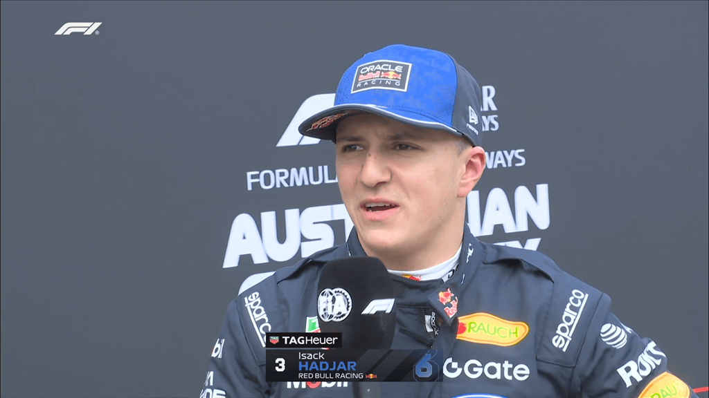 虎扑03月07日讯据天空体育消息,红牛车手伊萨克-哈贾尔在F1澳大利亚大奖赛排位赛取得第三名,虽然与前方梅赛德斯差距较大,但他对自己的红牛首秀感到满意。