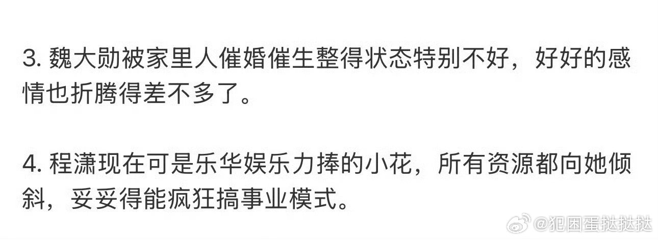 曝魏大勋秦岚感情现状 魏大勋深陷家人催婚催生压力,情绪状态低迷,两人感情因现实