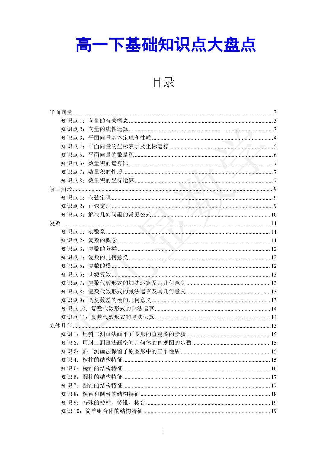我愿称之为高一数学进步最快的方式。【40页】高一下数学来来回回就考这40页,全是核心重点!可下载打印~