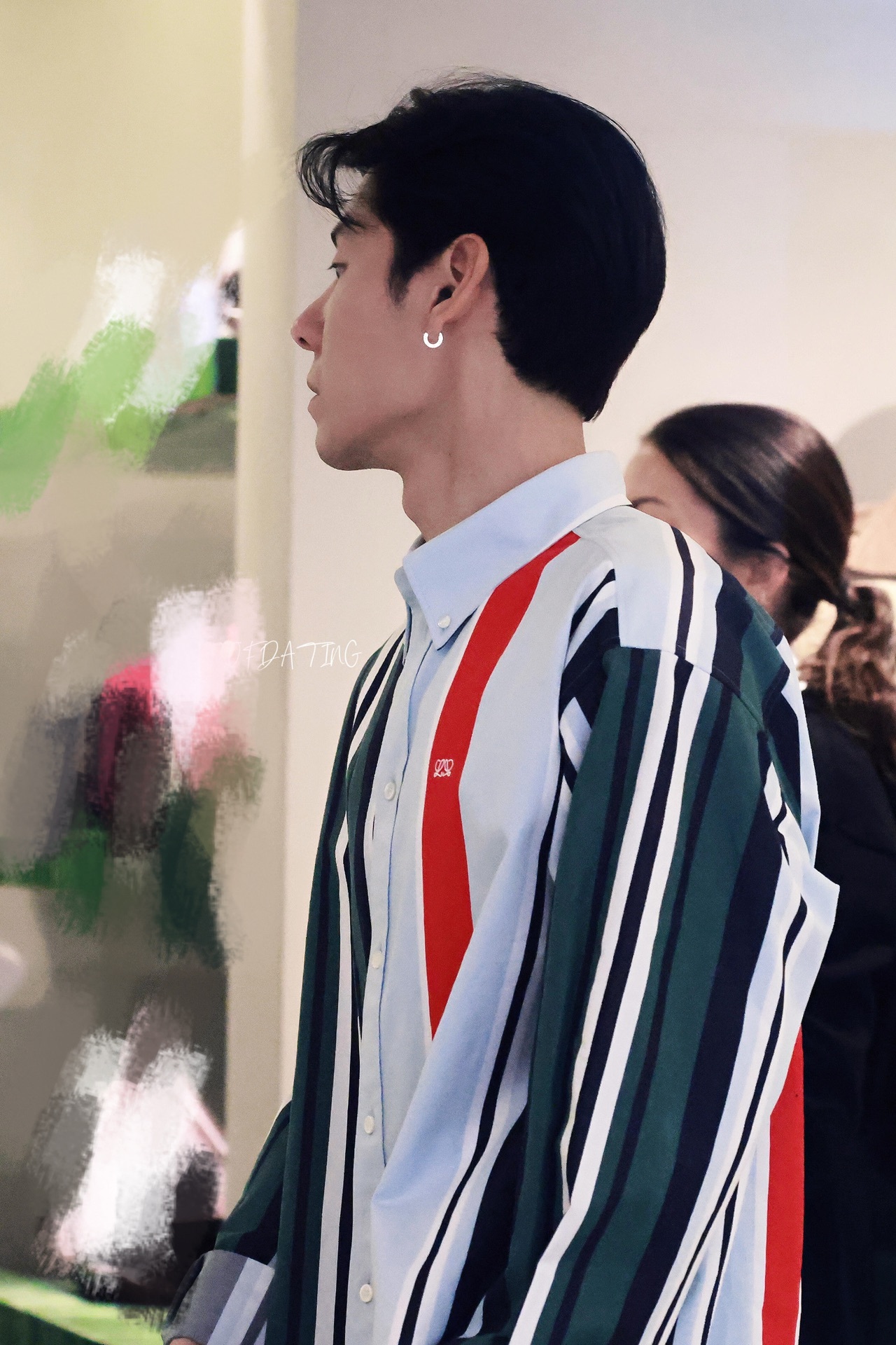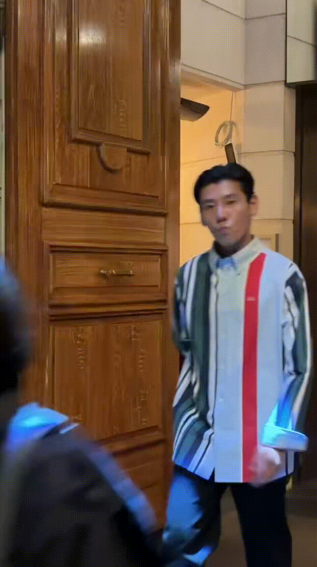 蒋奇明突然闯入镜头 蒋奇明突然出现在镜头里,彩色条纹衬衫好吸睛,松弛又随性的姿态