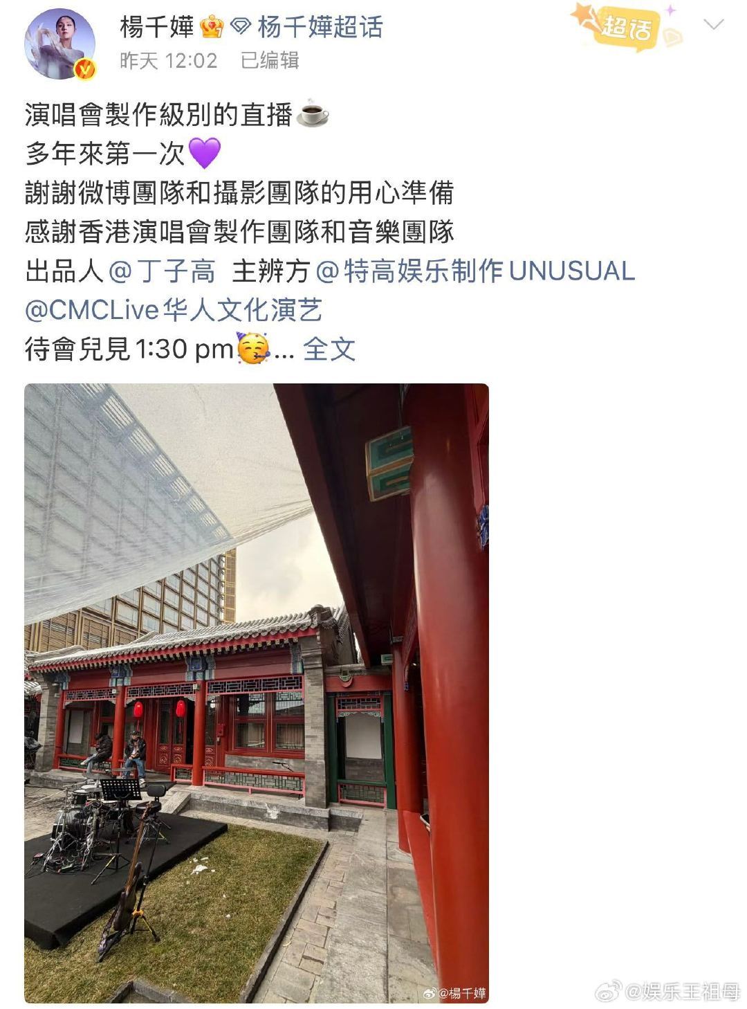 杨千嬅把红馆搬进四合院从红馆到四合院,杨千嬅用歌声架起桥梁。S级直播首唱《回归一