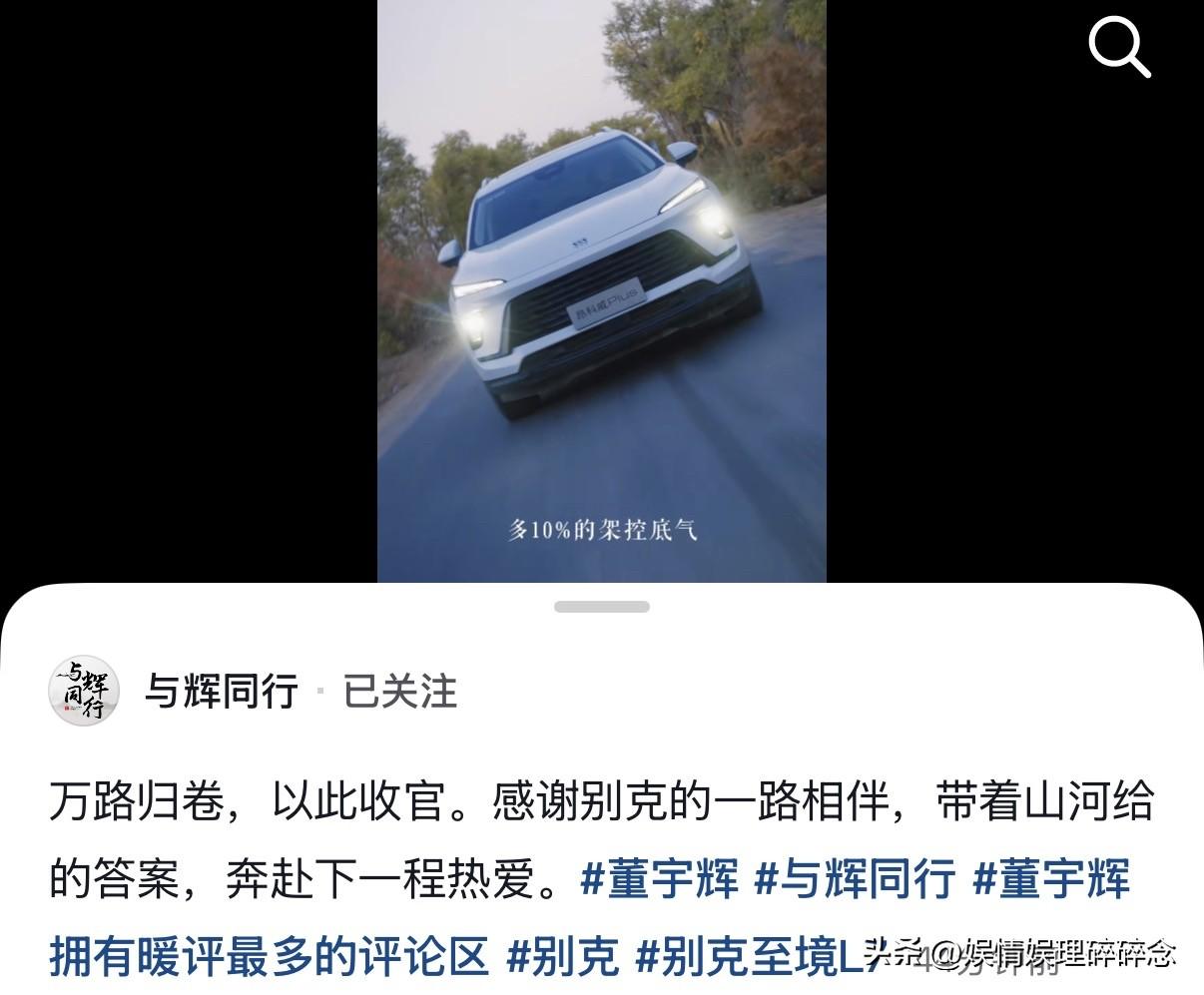 这是属于“与辉同行”才有的仪式感, 曾和别克一起奔赴山海, 现在连告别都充满温柔和体面。 “与辉同行”更新视频,文案说:“万路归卷,以此收官。感谢别克的一路相伴,带着山河给的答案,奔赴下一程热爱。” 3分46秒的视频,宇辉和主播纷纷出镜,置身于山河湖海之间,重温春夏秋冬一起走过的风景与陪伴。 这个视频我看了好几遍。不是因为它拍得多华丽,而是因为这种“告别”,在商业合作里太少见了。 大多数公司之间的品牌合作,结束就是结束,悄无声息,观众根本不会注意到,甚至根本不知道他们之前开的是什么车,什么时候又换了新的品牌。 现在他们合作到期了,用特别的方式说“告别”,有始有终,可以看出是“与辉同行”做事的一贯风格。把每一段关系都处理妥当,哪怕是商业合作,也要体体面面地开始,温温暖暖地结束。 相遇时真诚相待,告别时体面周全,这就是“与辉同行”才有的仪式感。