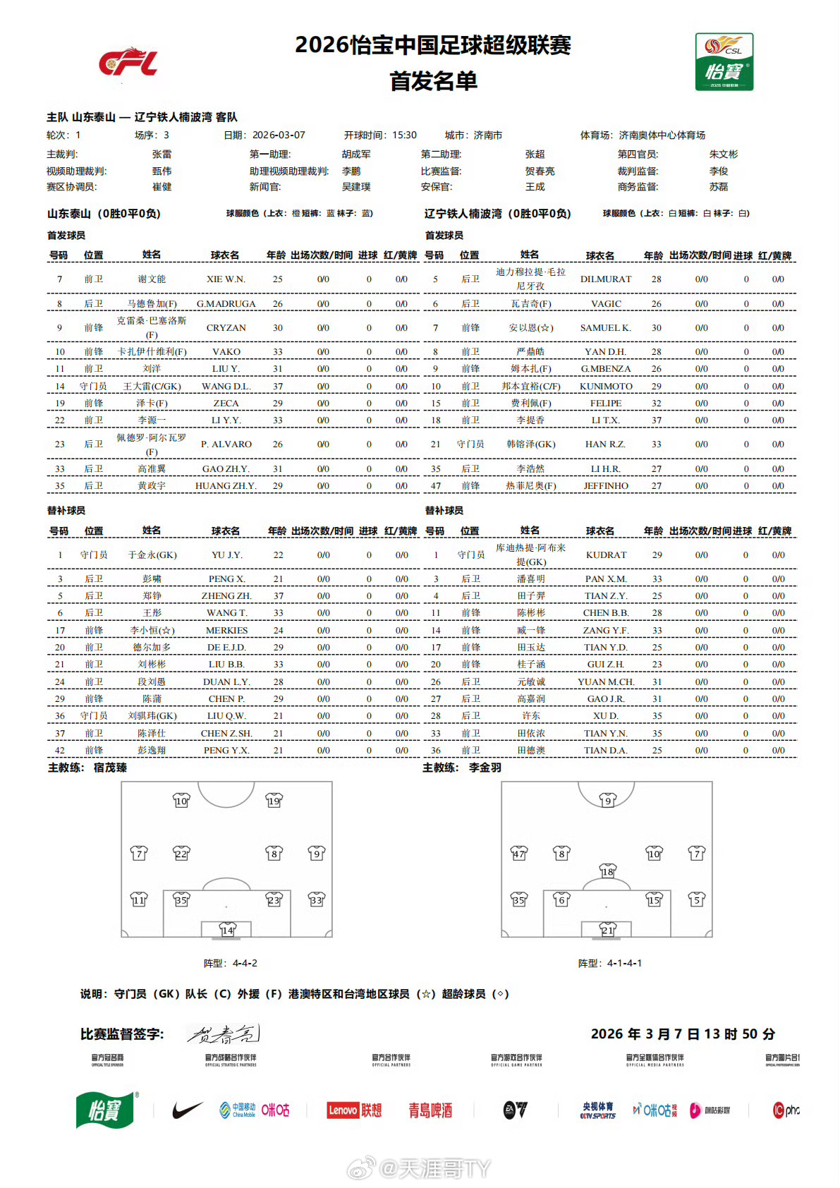 山东泰山 佩德罗·阿尔瓦罗 高准翼 黄政宇三后卫右边翼位是个变数山东泰山vs辽宁铁人首发