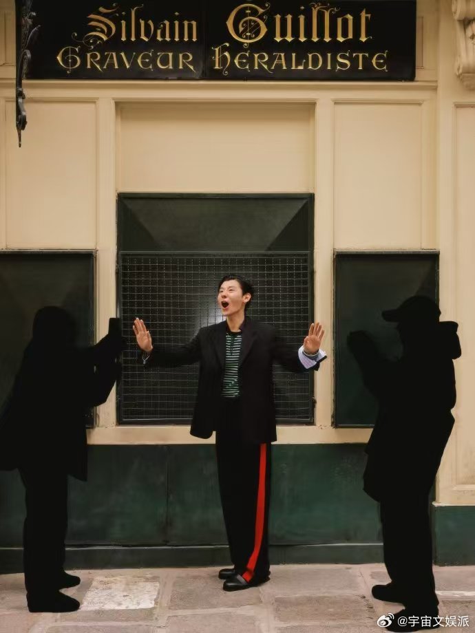 蒋奇明突然闯入镜头 哇!蒋奇明突然闯入,彩色条纹衬衫松弛又潮,信步街头自带氛围,棱角分明的脸太鲨我!