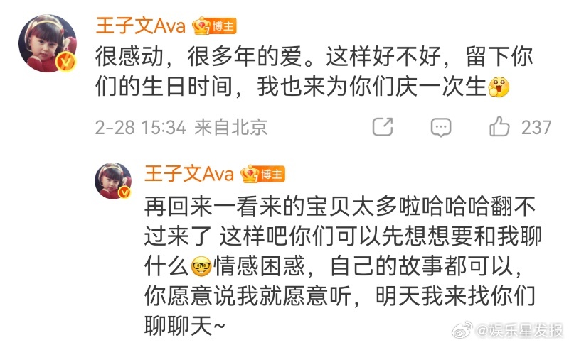 和粉丝的双向奔赴这块真的应该有一席之地线下在粉丝的镜头里她活人感满满,是温柔回应,互动满分的丸子文,线上是会在生日当天祝粉丝生日快乐,感谢陪伴的真诚小文,粉上这个王子文情绪价值绝对拉满了!王子文一对一在线缘辅导