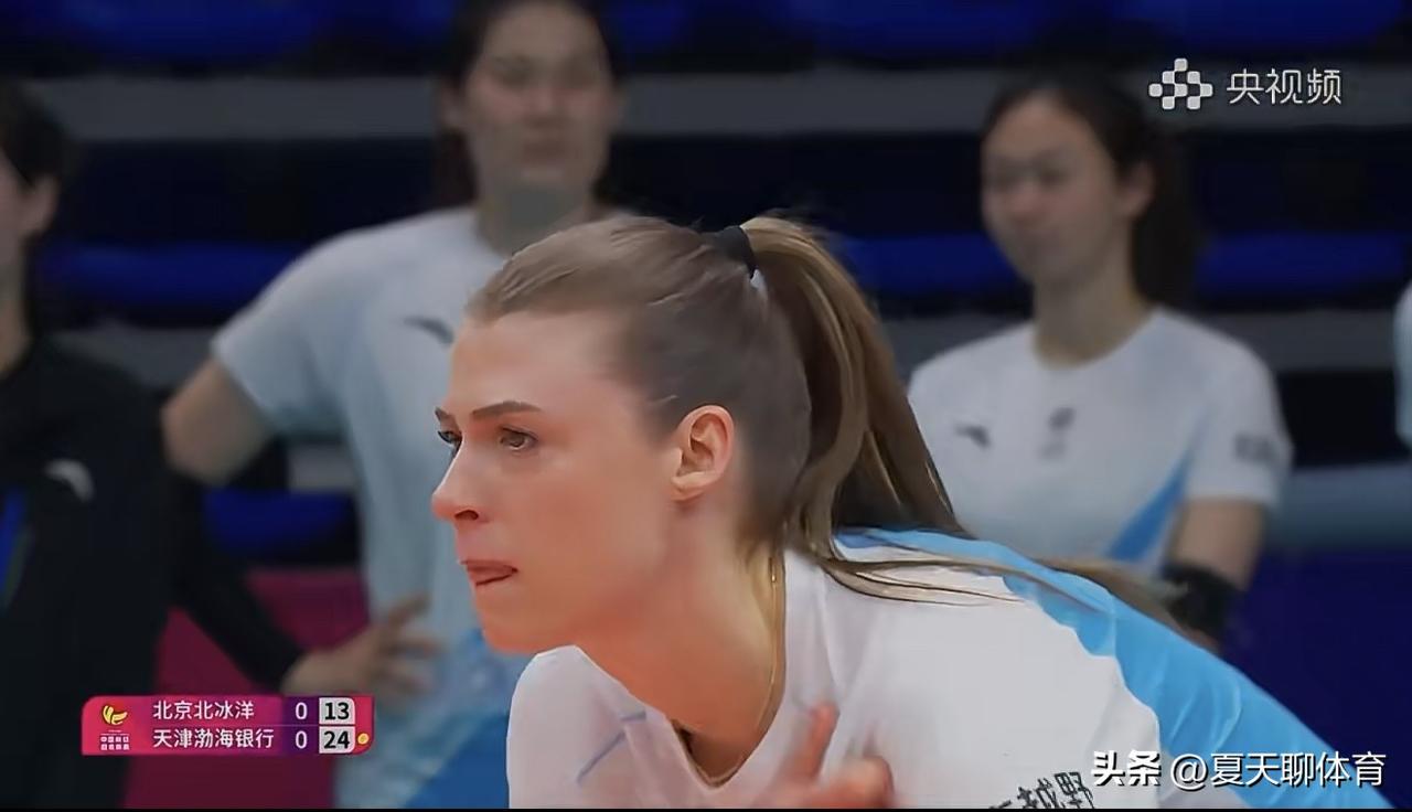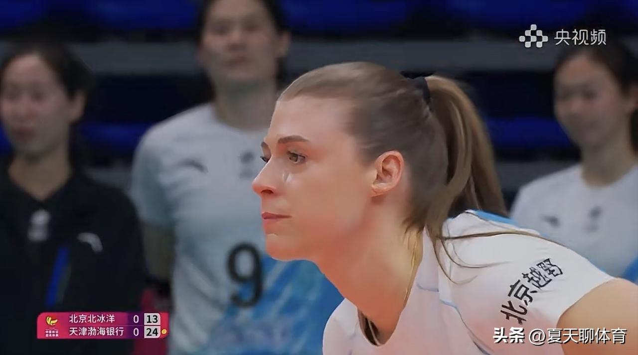 北京女排外援法布里斯哭得梨花带雨的!京津女排生死大战第一局,首发接应法布里斯在第一局发挥不太理想,失误偏多,在局末阶段一个扣球失误后,法布里斯突然就泪流满面,应该是对自己的发挥不太满意,人家北京女排这个外援还挺敬业,值得明年北京女排续约!