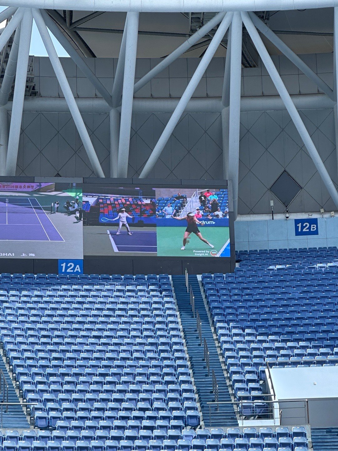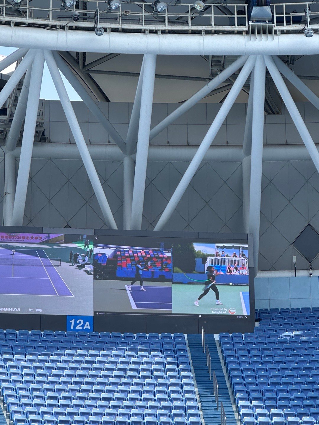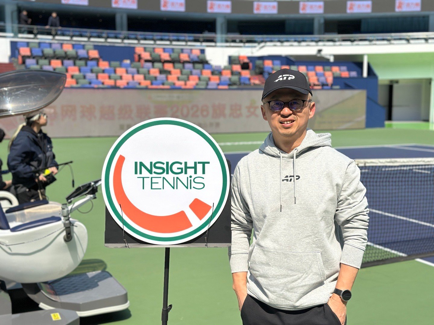 中央球场由Insight Tennis站台,为女选手们提供场边摄像+动作识别+技术纠错的AI服务。什么“我的正手像莎娃”、“我的正手约等于高芙”都被触发出来了,技术评点的实用价值给到,对标球星的情绪价值也拉满,女孩子们一个个尽兴而归,好几个一轮不够提出加测一轮。