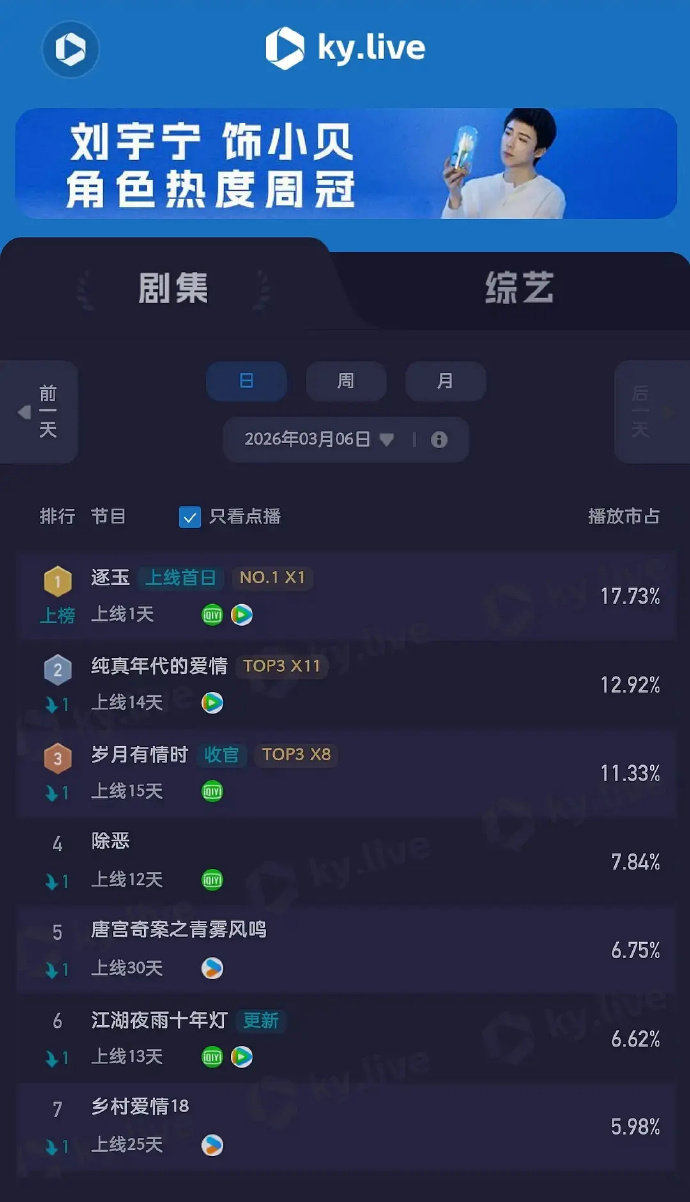 逐玉双云第一逐玉的成绩 逐玉的成绩有,谁懂这个逐玉双云第一的含金量啊,首播就拿下云合、酷云双第一,夯爆了小逐玉,就这样美美的震惊全场,期待住接下来的故事发生啦~