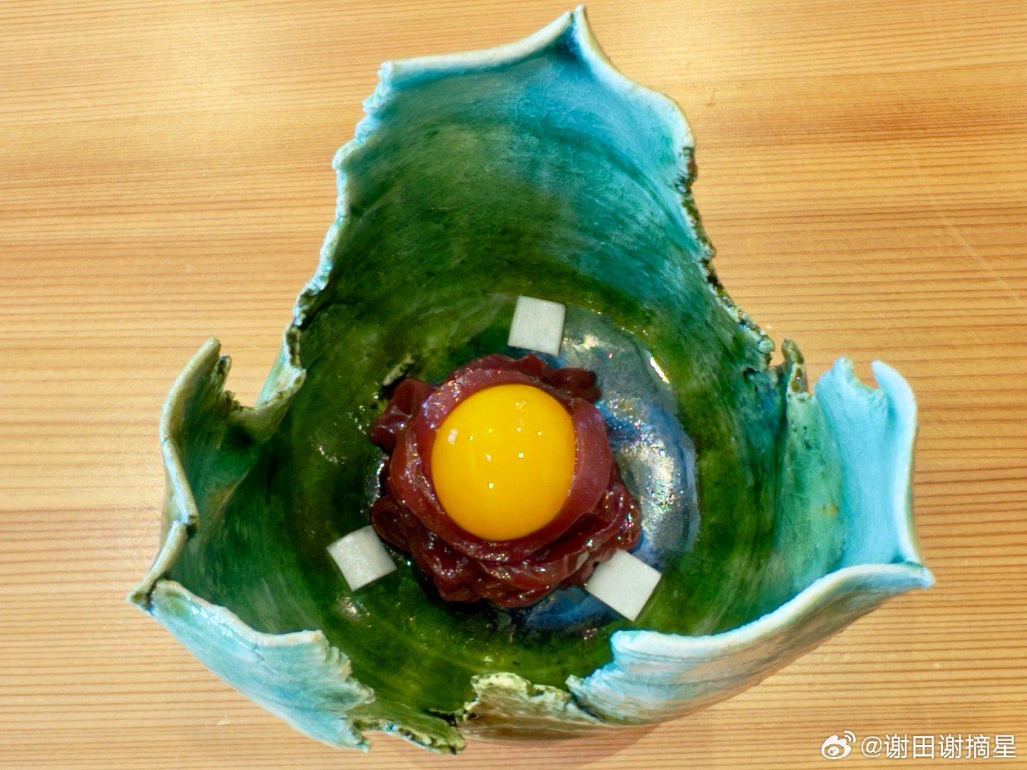 说菜,图1和图2是熊掌和恶魔果实,真正的开场是图3七草鹿肉粥,用的鹿肋骨肉,让人一下子感到了野味的气息。然后是图4,野猪肉汤的椀物,里面是炸胡麻豆腐和柚子,汤汁非常香浓,胡麻豆腐的软糯加上柚子香,令人难忘。图6是第三道鹿心塔塔,拌着鸡蛋吃,极有野味气息,但是不腥。