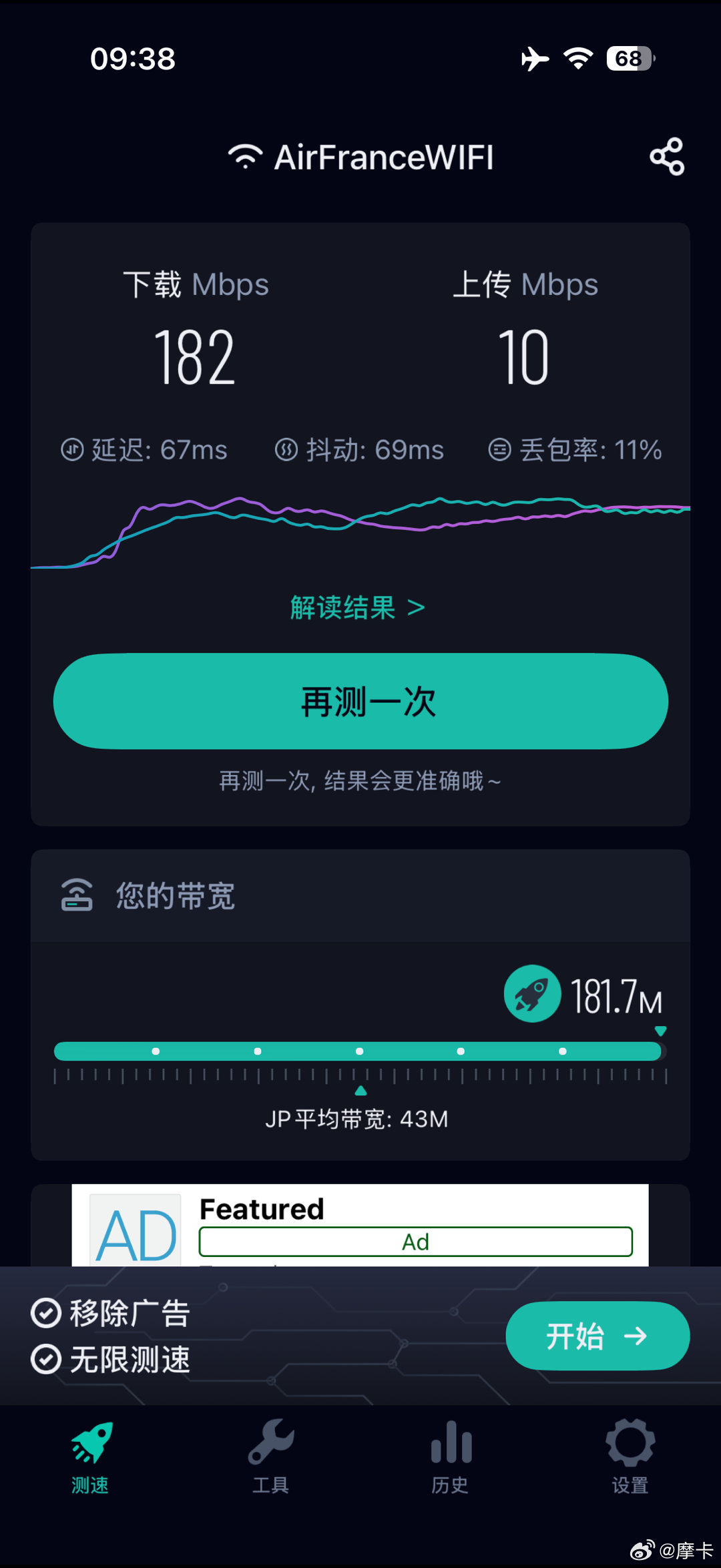 法航机上的网速还是可以的,这次往返四段全是法航,方方面面碾压国泰了,更别说美联航