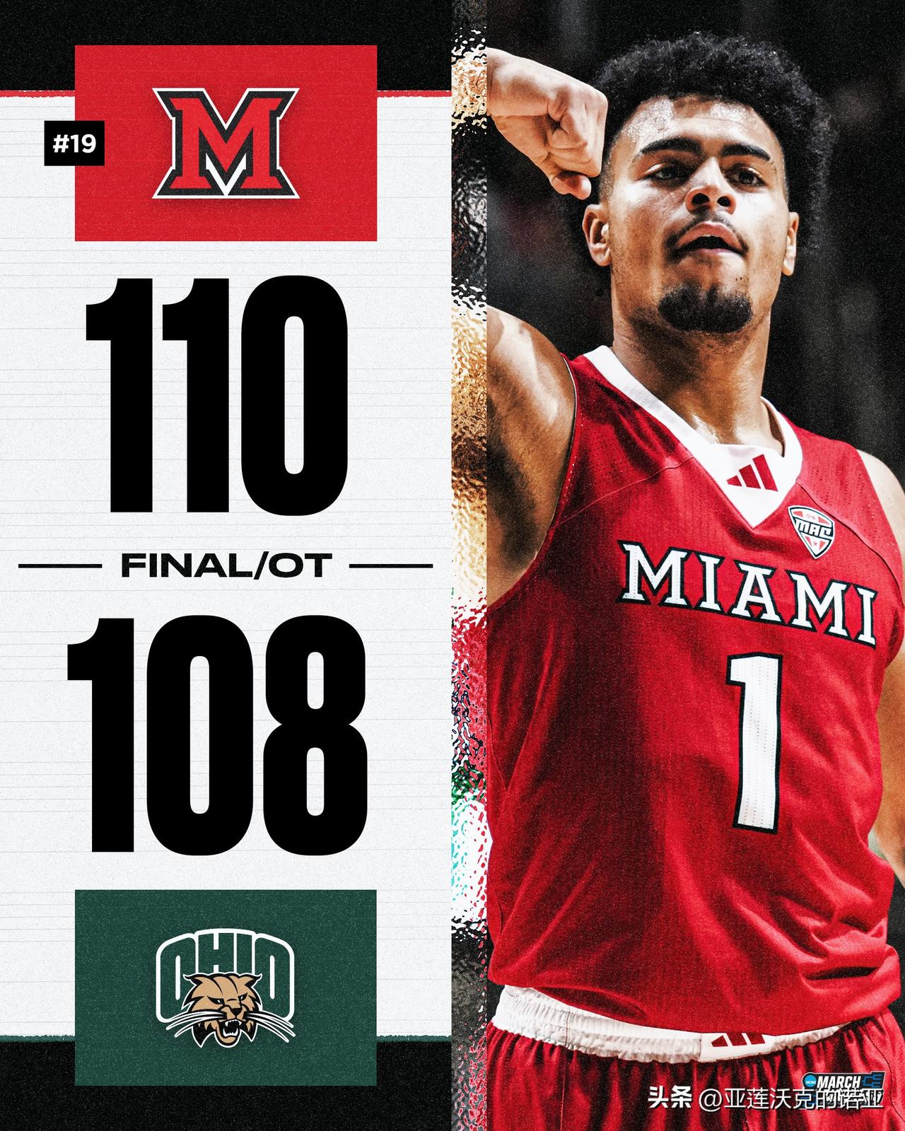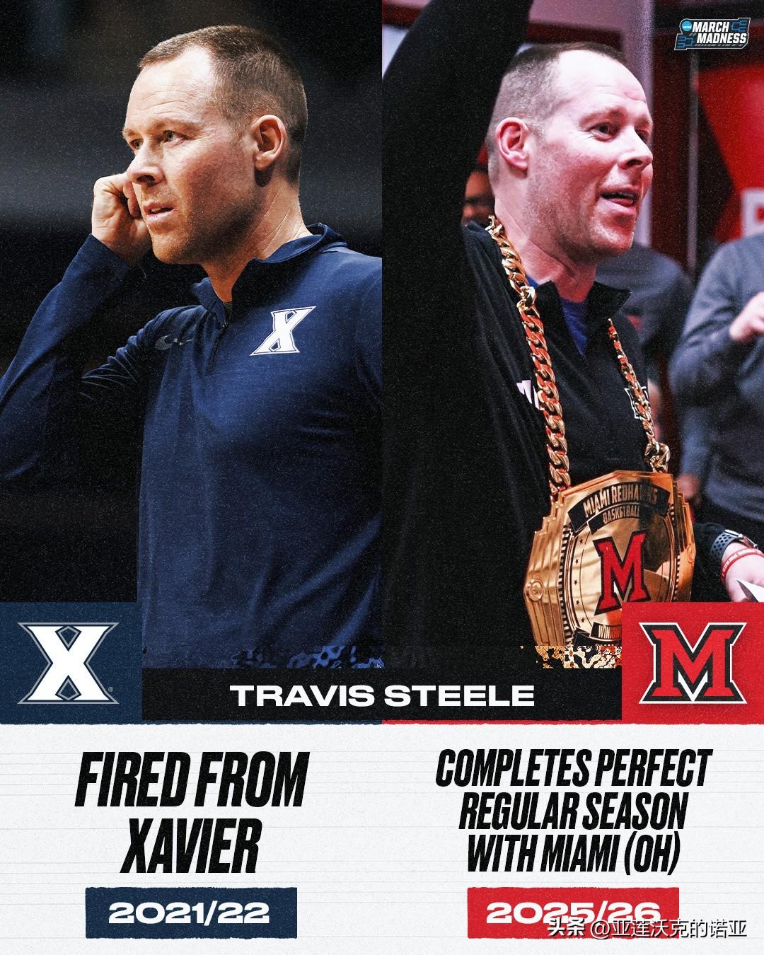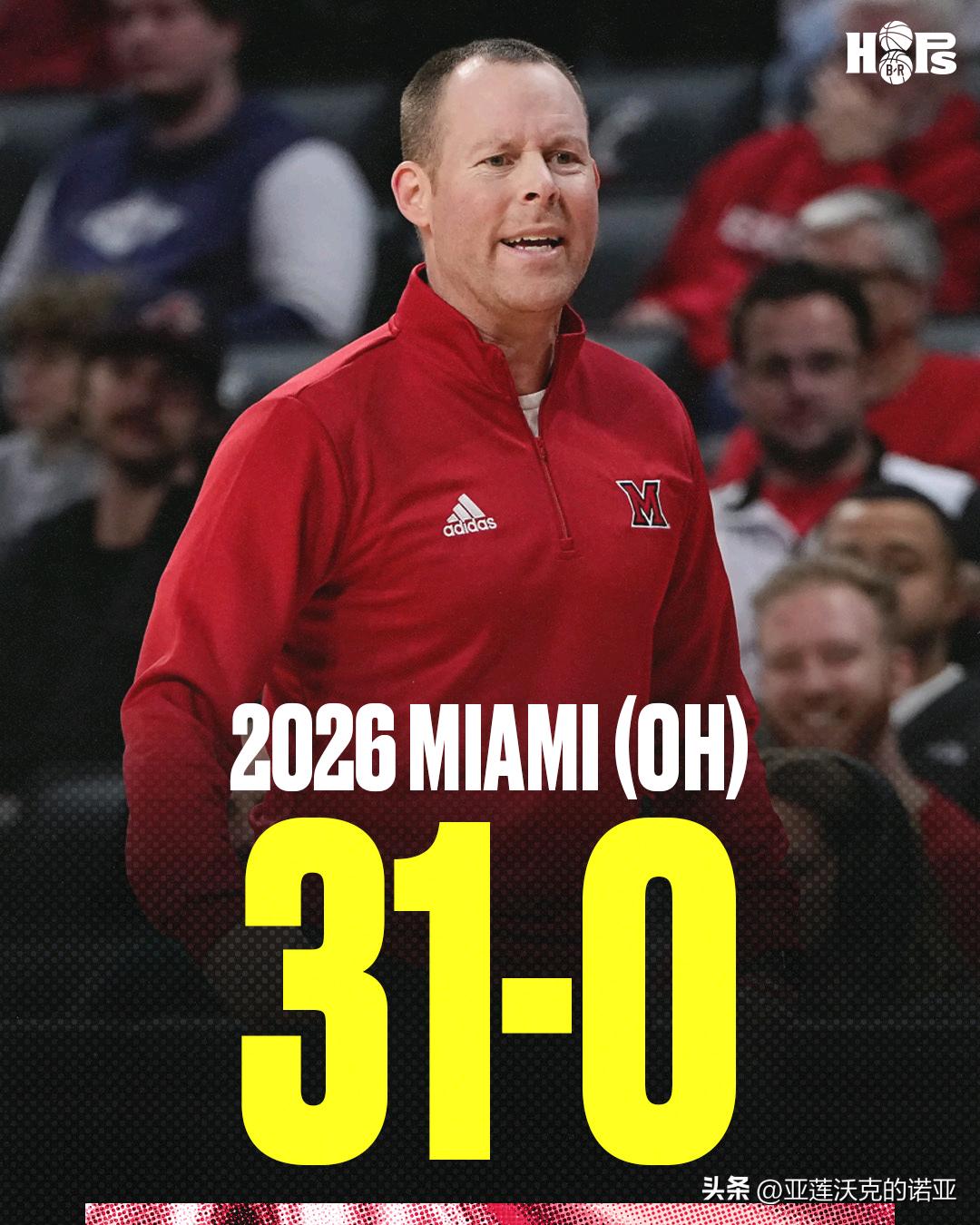 迈阿密大学俄亥俄分校Miami (Ohio)豪取31连胜,上一次有球队常规赛不败还是2021年冈萨加与2015年肯塔基大学,主帅Travis Steele赛后感谢提拔他的教练Kelvin Sampson与Chris Mack,如果没有他们,我今天不会站在这里,接下来他将专注于夺得MAC联盟锦标赛冠军,他要在克利夫兰剪下篮网。
