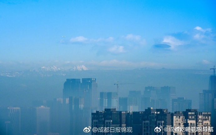 美炸了!一夜小雨过后,天空放晴,成都的蓝天白云,颜值爆表!还有不少网友还拍到了壮丽的雪山,山脉轮廓在霞光中显得异常清晰,壮哉!美哉!