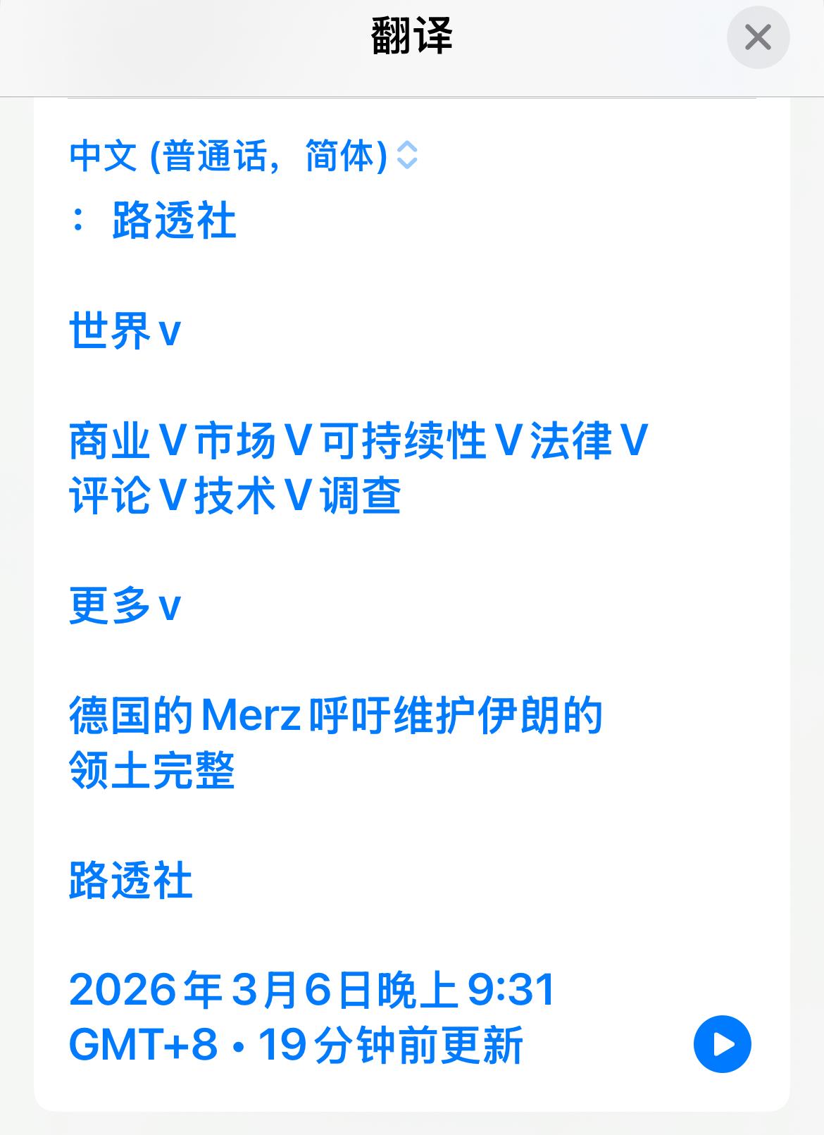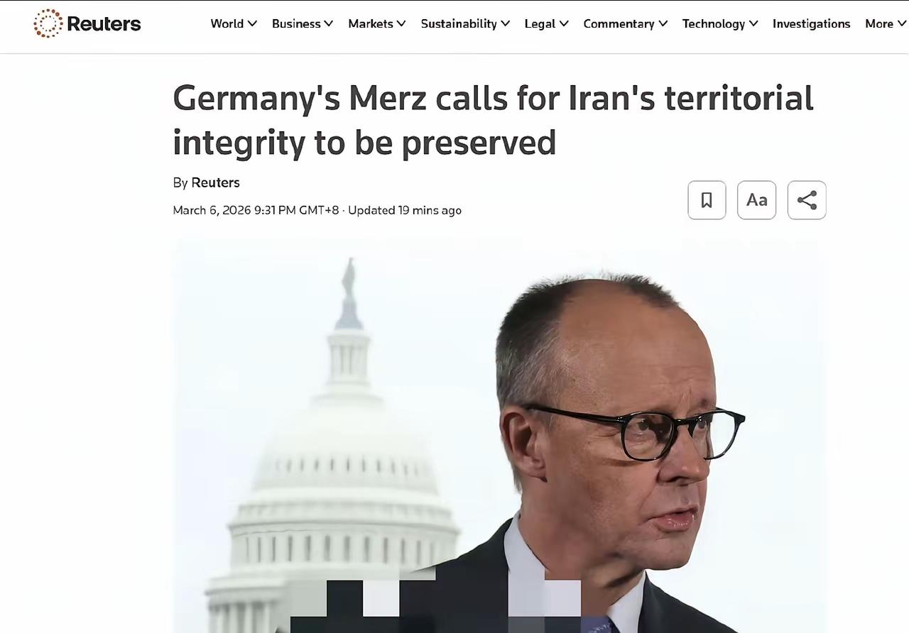 德国态度,欧洲的困境! 3月6日,德国总理默茨公开宣称,一场无休止的战争,亦或是伊朗国家结构的瓦解,均不符合德国和欧洲的利益,伊朗不应沦为代理人战争的战场。 伊朗的领土完整必须得到保障,伊朗国家需维持正常运转,伊朗人民有权自主决定自身命运。 德国正与美国、以色列、地区国家以及欧洲伙伴展开协调,力图尽快终止战斗,并为中东制定“战后日程”,目标包括实现区域和平稳定、促使伊朗放弃核与导弹计划,以及助力伊朗迎来稳定的未来。 部分欧洲国家与德国的看法基本一致,它们既怕得罪美国,又担心伊朗大乱会殃及自身。此前的叙利亚问题和当下的乌克兰局势,已让欧洲疲惫不堪,难民潮泛滥、战争创伤难平、能源危机等问题,令欧洲吃尽苦头。美国行事如流氓,在欧洲地区怂恿拉拢欧洲胡乱发动战争,最终美国获利,欧洲却要为此买单。如今美国又与伊朗开战,俄乌战争尚未结束,美国也不与欧洲商量,便在中东开辟了新战场。伊朗封锁霍尔木兹海峡,石油禁运让欧洲唯一的油路被切断。俄罗斯也毫不示弱,原本计划2027年给欧洲断气断油,如今提前至2026年。美以伊开战,欧洲再度遭殃。欧洲既支持开战,又要保证伊朗领土完整。欧洲宛如受气包,既要听从美国的指令,又要时刻担忧被战争波及。如此尴尬的处境,让欧洲在这场复杂的国际博弈中举步维艰。