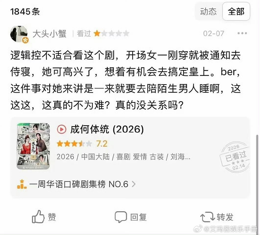 逐玉编剧给多部剧打低分,甚至包括男女主张凌赫 田曦薇出演的作品逐玉编剧 豆瓣打分