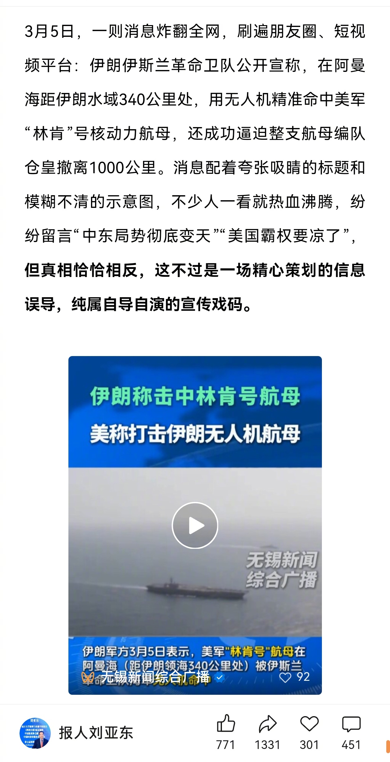尚在国外未归,观察伊朗局势只能抓大放小,美航母被炸是个大事,值得关注一下