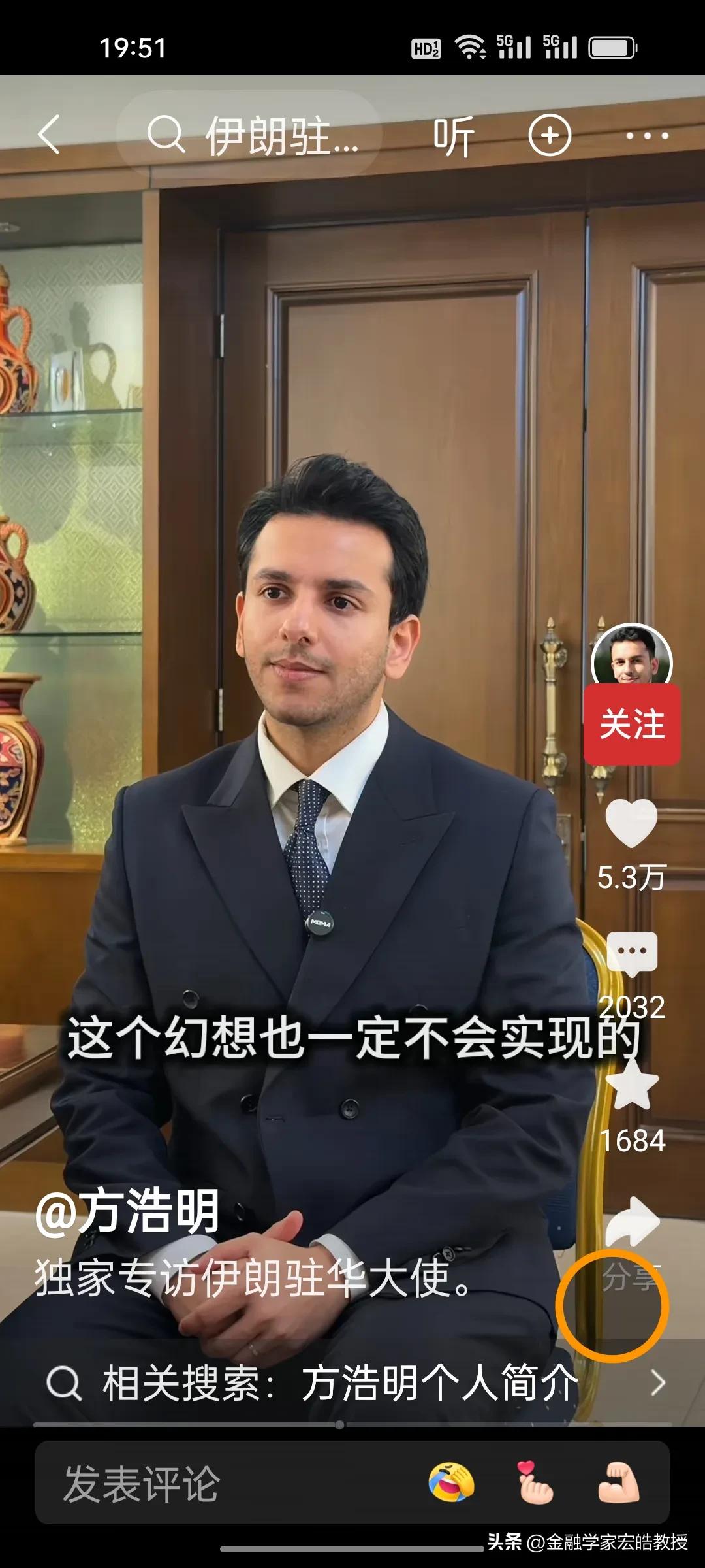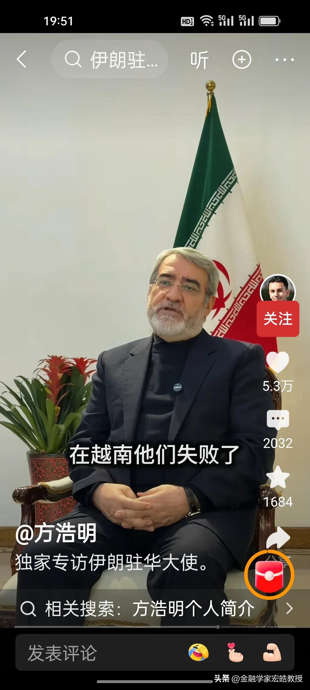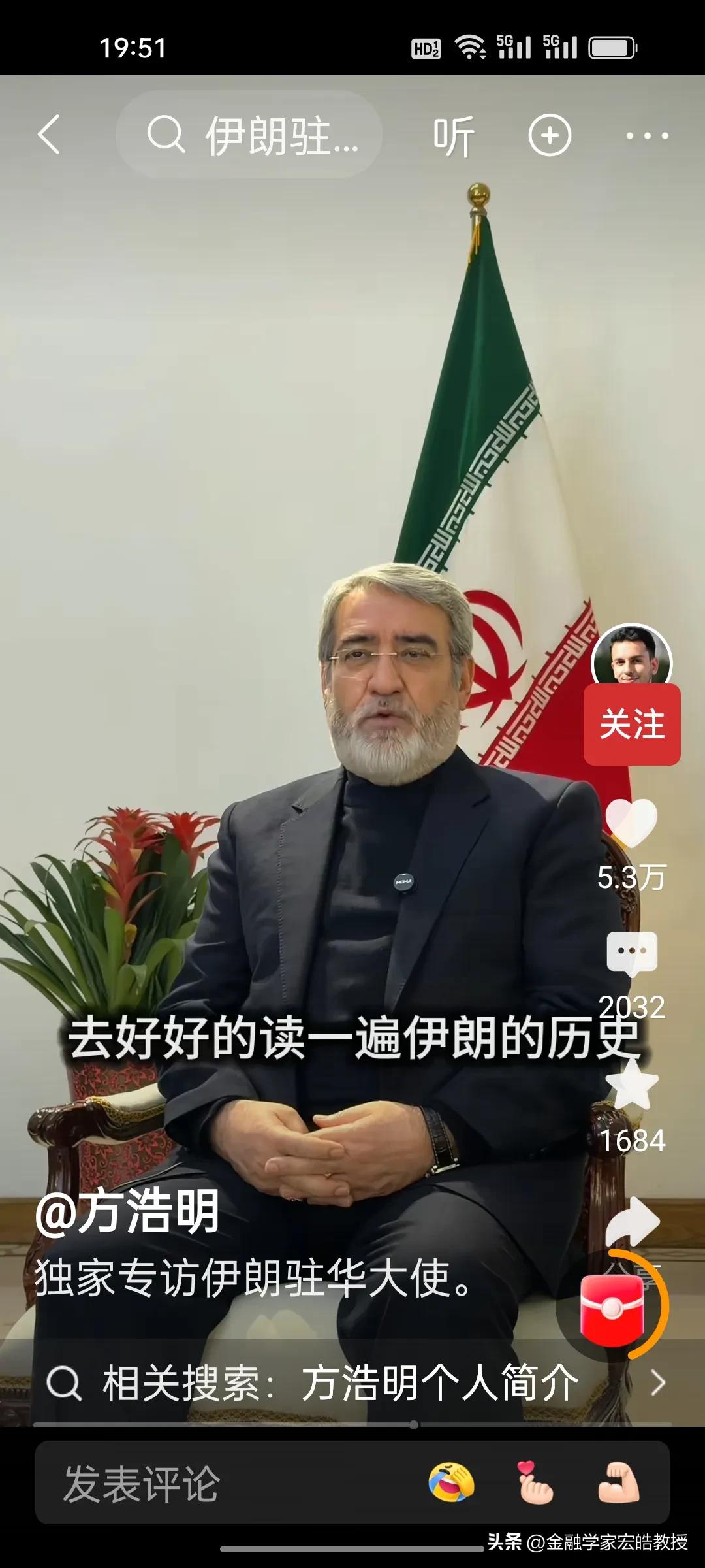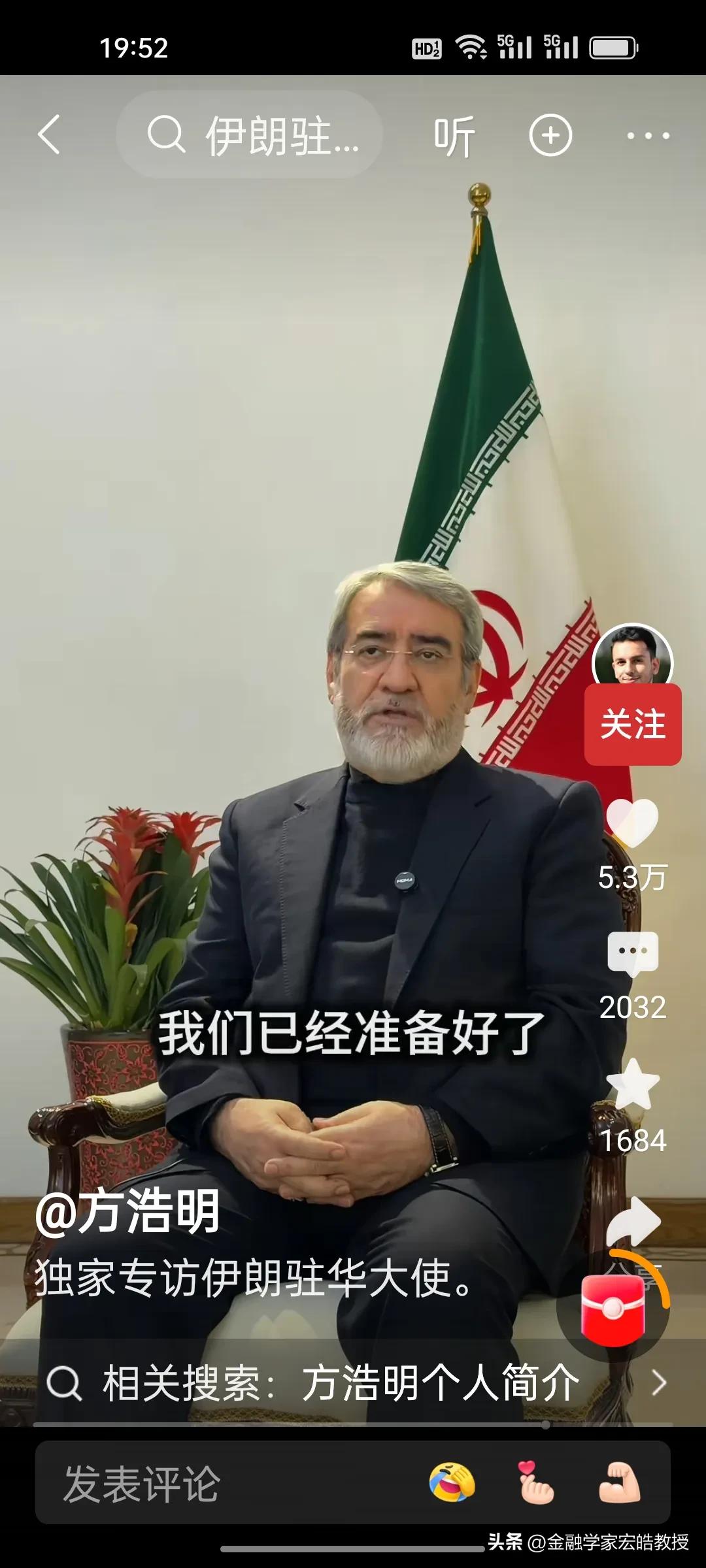 伊朗驻华大使硬刚特朗普!建议特朗普读伊朗历史,重申伊朗不是委内瑞拉,伊朗人民现在根本不相信美国,美国在阿富汗、伊拉克的地面战都输了,还想在伊朗复制?伊朗驻华大使大使说:我们准备好了! 在中阿卫视记者方浩明最新对伊朗驻华大使的独家专访中,伊朗驻华大使火力全开,直接戳破美国的霸权迷梦,面对特朗普“亲自任命伊朗领导人”的狂言,大使直言:“特朗普有很多这样的幻想,一定不会实现的。伊朗人民会自己决定自己的未来。美国已经背叛了之前的两轮对话。” 特朗普从“两天内收拾完毕”的迷之自信,到如今第8天仍深陷泥潭,已经要靠白宫众多官员和牧师一起给美军祈祷,美国的如意算盘已经彻底落空。天南地北大拜年