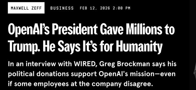 特朗普重新上台后,奥特曼迅速靠近新政府,并在白宫与特朗普共同宣布「Stargate」项目,OpenAI总裁GregBrockman和妻子更是大手笔捐赠支持特朗普阵营。