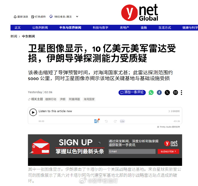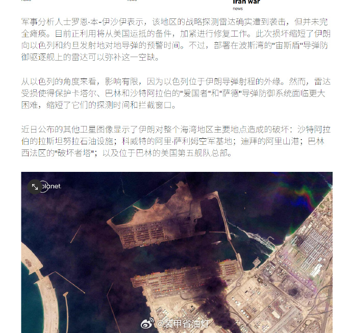 🔻当然,有一名以色列军事博主也表示:“该袭击缩短了导弹预警时间对海湾国家尤甚,从以色列的角度来看,影响有限,因为以色列位于伊朗导弹射程的外缘。然而,雷达受损使得保护卡塔尔、巴林和沙特阿拉伯的"爱国者"和"萨德"导弹防御系统面临更大困难,缩短了它们的探测时间和拦截窗口”,以及:“战略探测雷达确实遭到袭击但并未完全瘫痪。目前正利用将从美国运抵的备件,加紧进行修复工作。此次损坏缩短了伊朗向以色列和约旦发射地对地导弹的预警时间。不过,部署在波斯湾的"宙斯盾"导弹防御驱逐舰上的雷达可以弥补这一空缺。”🔻美国战争部长赫格塞斯在节目中突然威胁所有认为自己能活下去的伊朗人:“现在唯一需要担心的,是那些认为自己能活下去的伊朗人。”