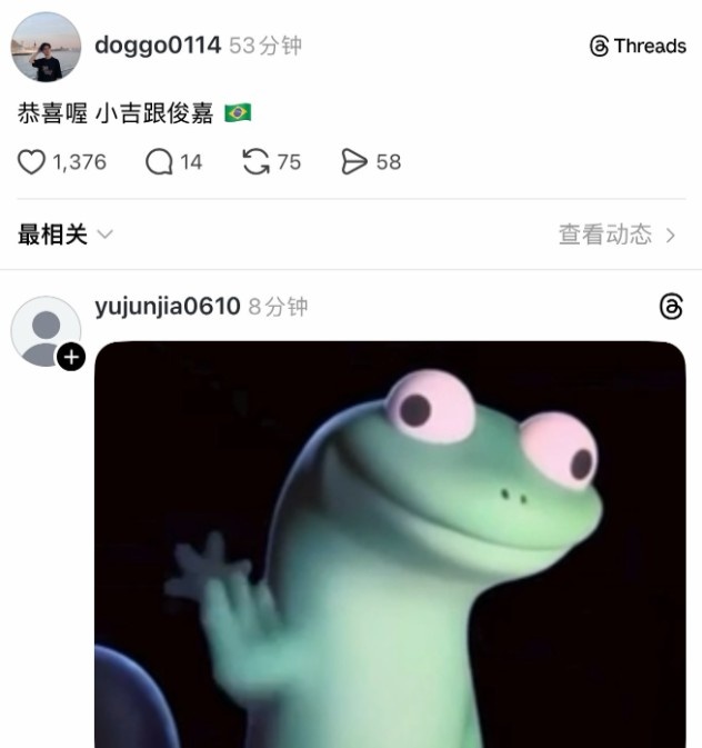 Doggo动态祝贺HongQ、junjia进先锋赛;junjia表情包回复