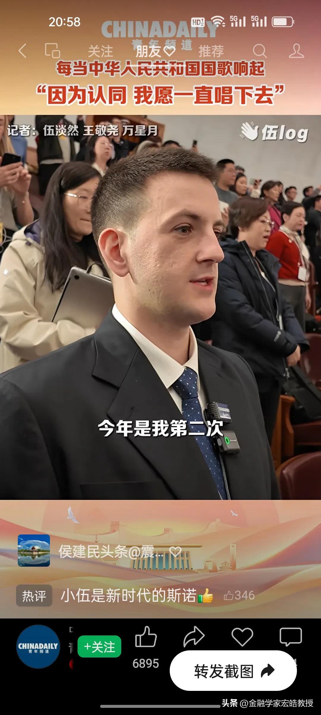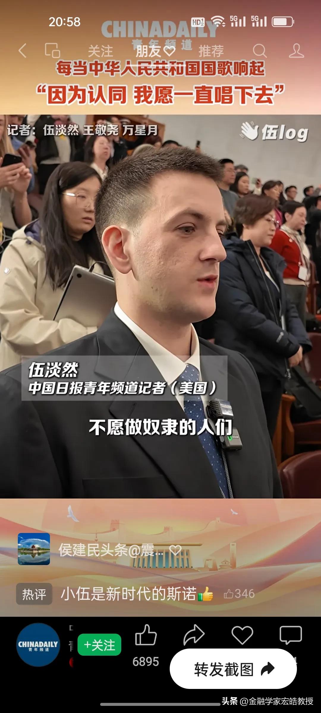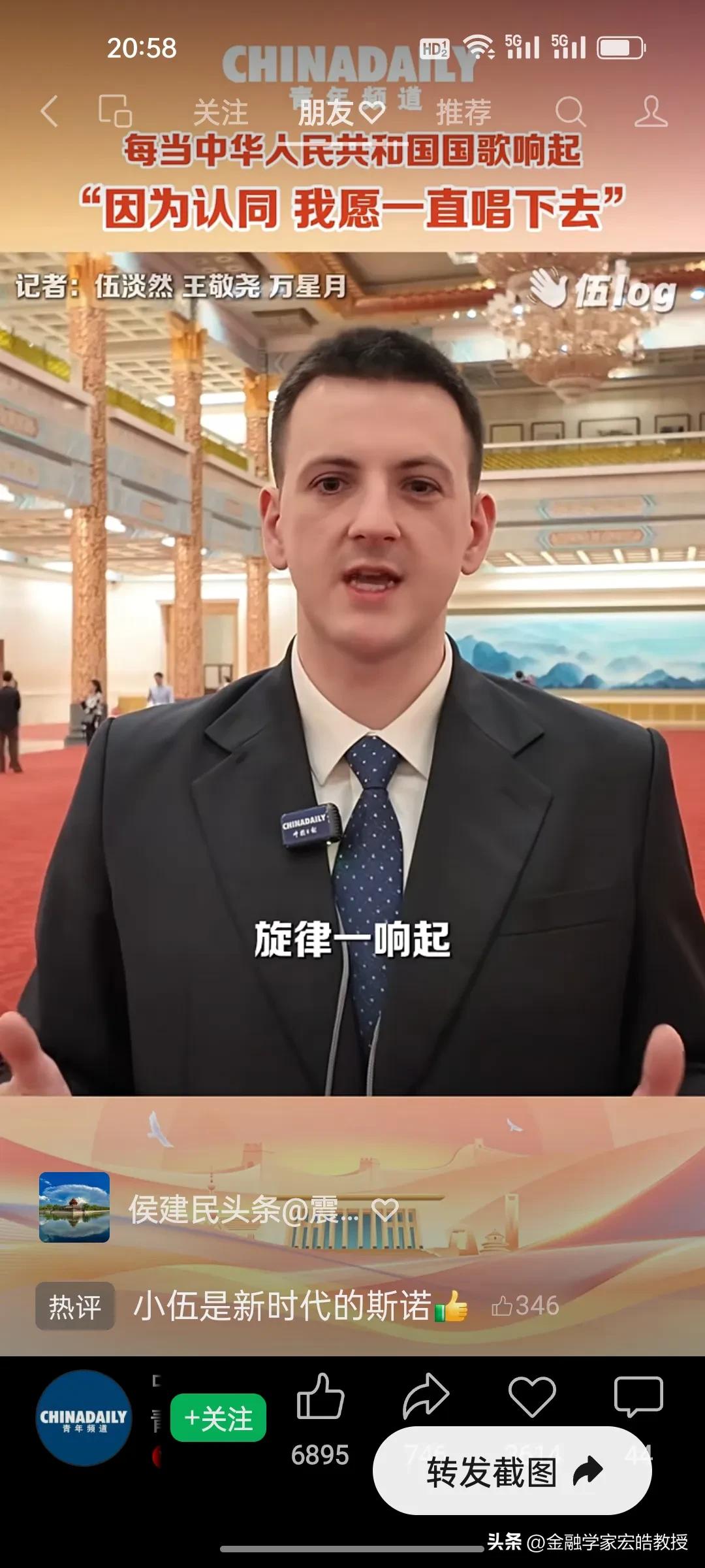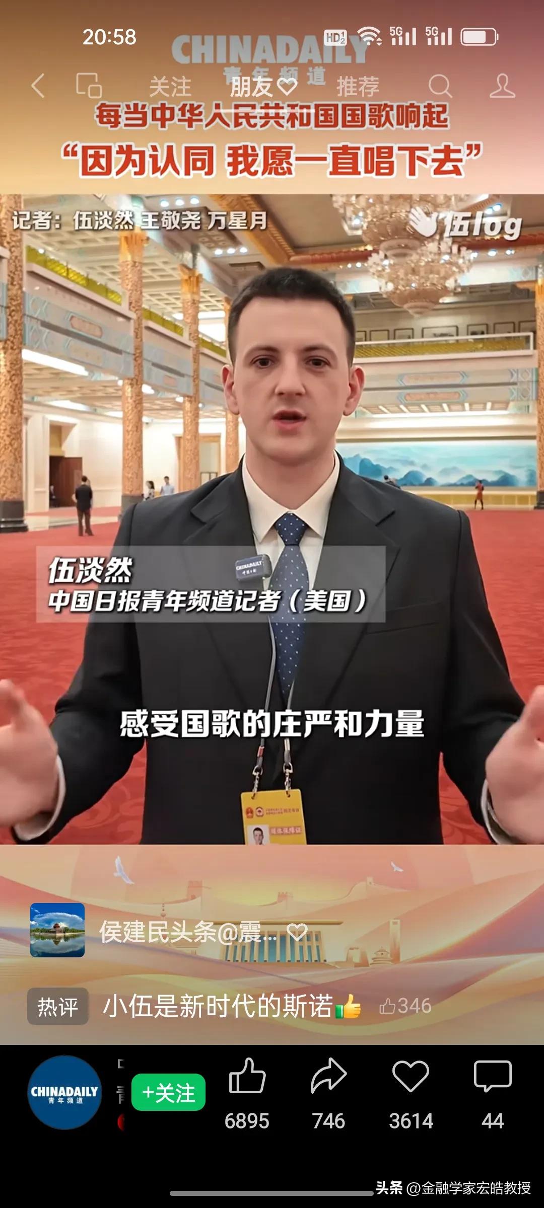 破防了!这个美国小伙记者在两会现场高唱中国国歌,估计特朗普看了都会沉默。 刚刚看到美国记者伍淡然在两会现场跟唱国歌的视频,瞬间破防!作为中国日报的外籍记者,他第二次亲历两会,坦言国歌不是普通旋律,而是庄严的提醒。 “因为认同,我愿意一直唱下去”,这句告白胜过千言万语。当他在人民大会堂和众人同唱时,共享的是同一份力量与敬意。 同样是美国人,一边是特朗普扬言扩大对伊朗的打击,一边是小伍用行动诠释对中国的认同。这或许就是最好的回答:真正的力量,从不是霸权的强硬,而是人心的凝聚与所向。