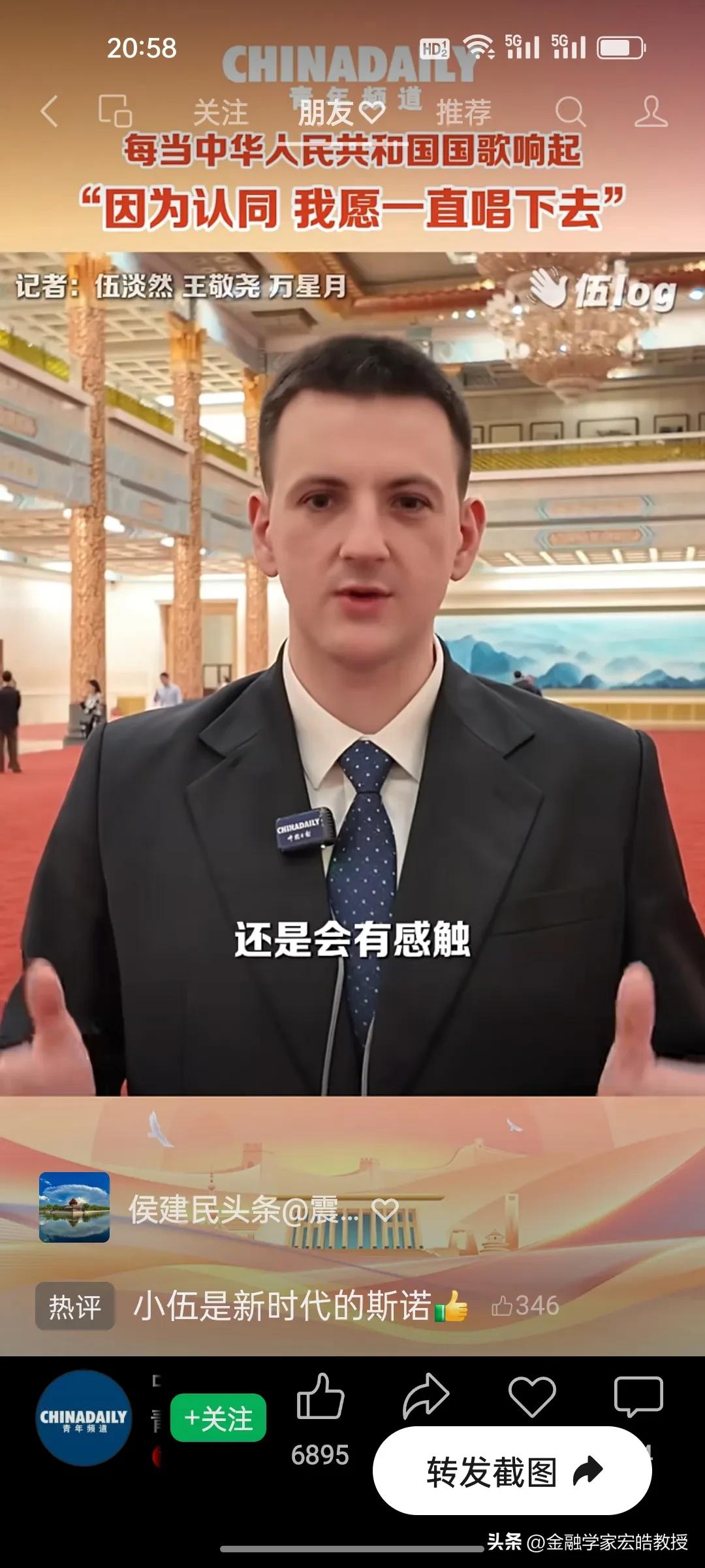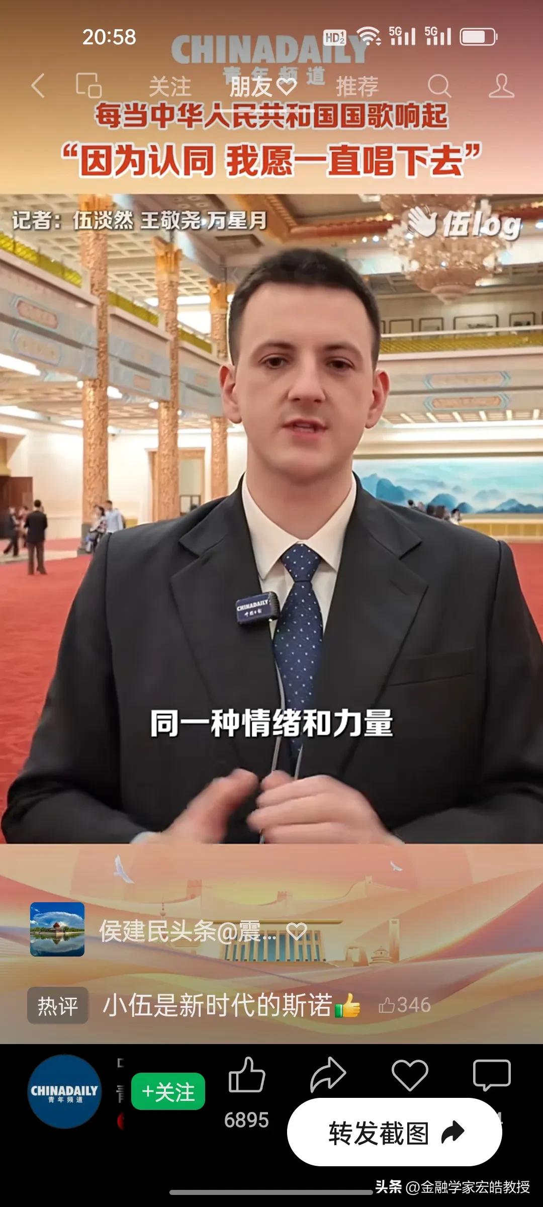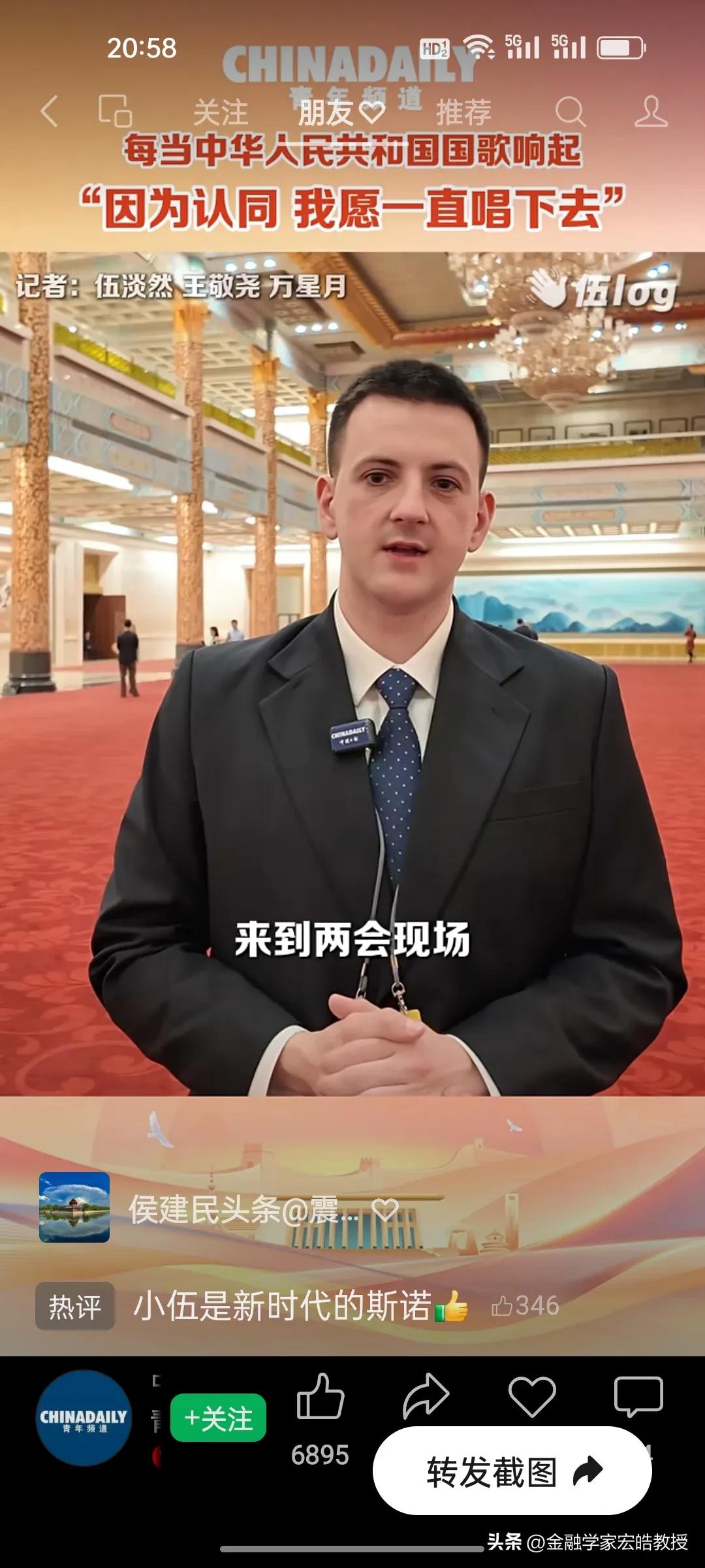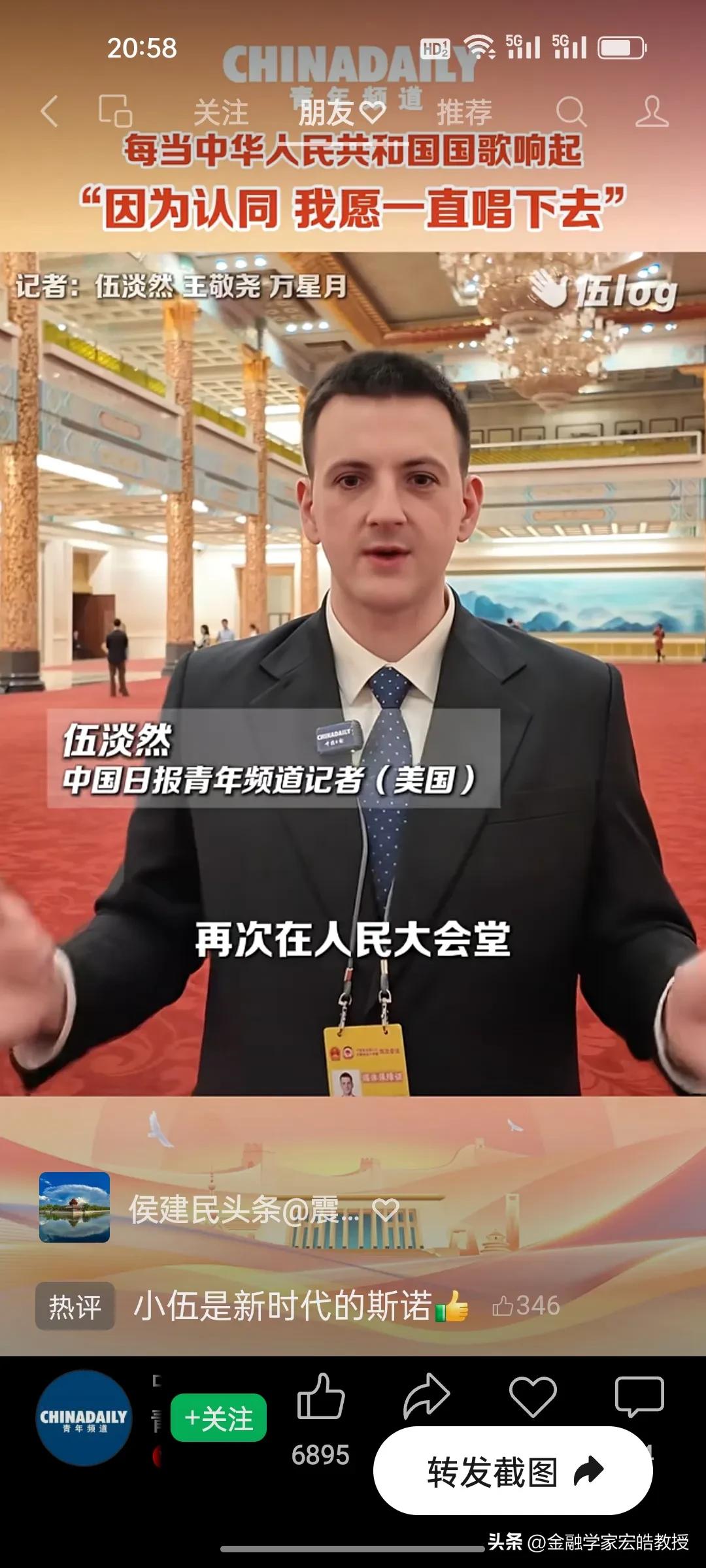 破防了!这个美国小伙记者在两会现场高唱中国国歌,估计特朗普看了都会沉默。 刚刚看到美国记者伍淡然在两会现场跟唱国歌的视频,瞬间破防!作为中国日报的外籍记者,他第二次亲历两会,坦言国歌不是普通旋律,而是庄严的提醒。 “因为认同,我愿意一直唱下去”,这句告白胜过千言万语。当他在人民大会堂和众人同唱时,共享的是同一份力量与敬意。 同样是美国人,一边是特朗普扬言扩大对伊朗的打击,一边是小伍用行动诠释对中国的认同。这或许就是最好的回答:真正的力量,从不是霸权的强硬,而是人心的凝聚与所向。