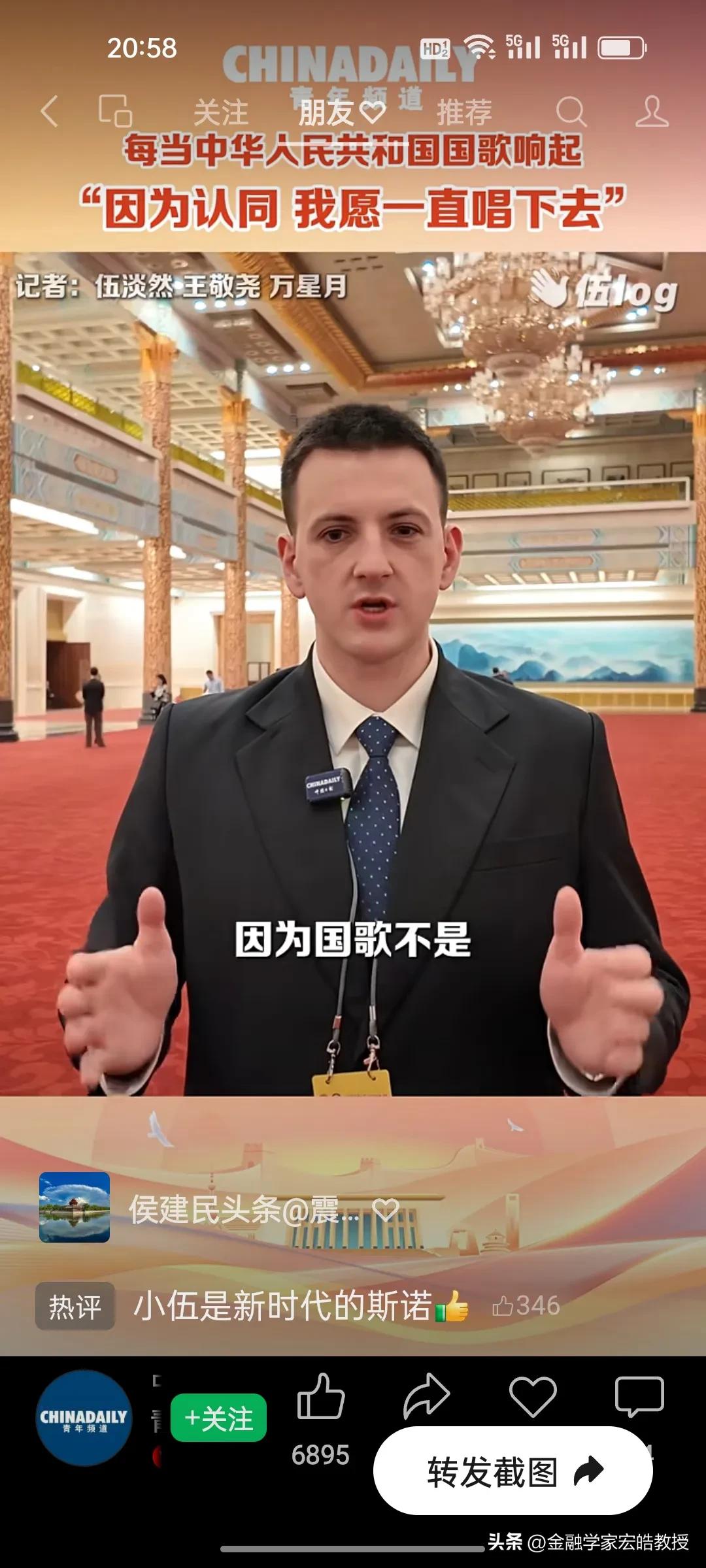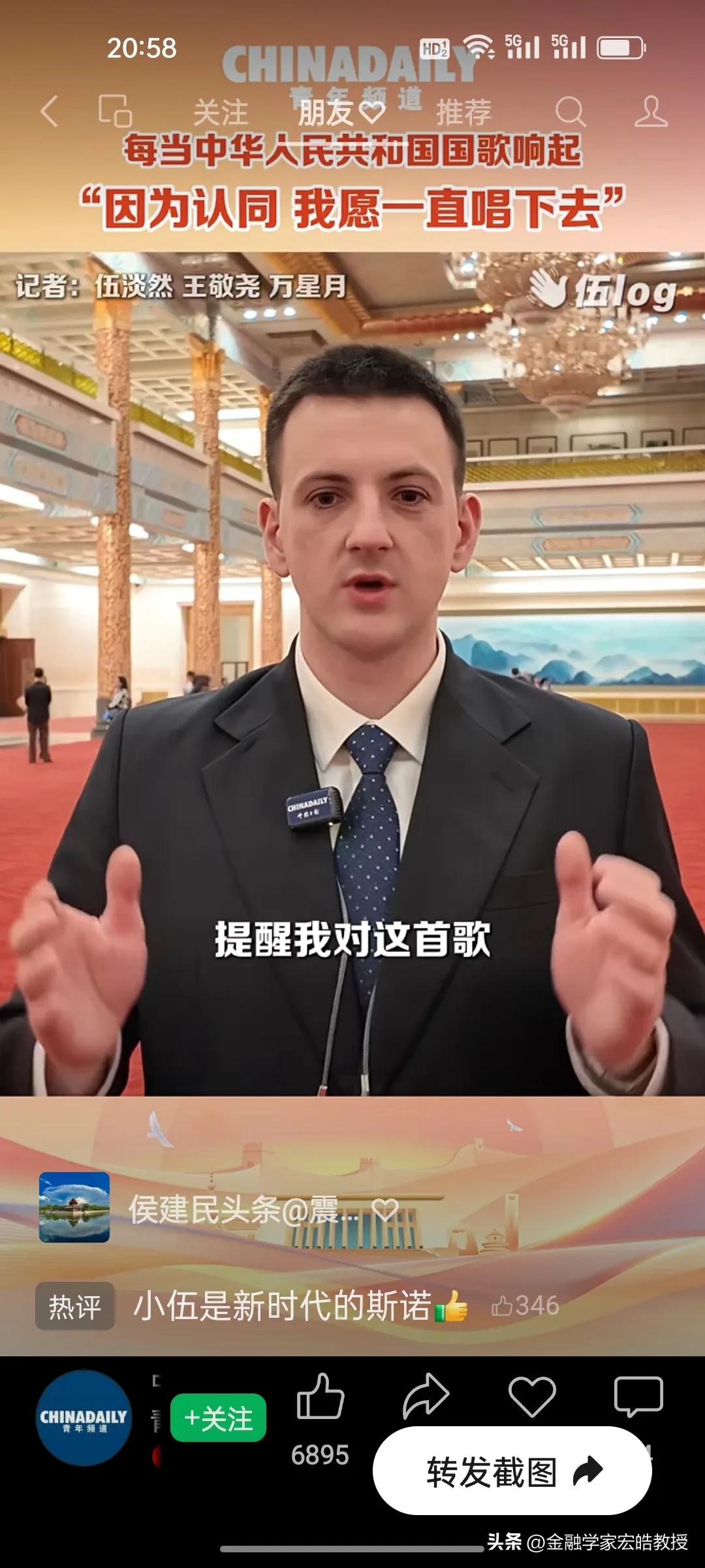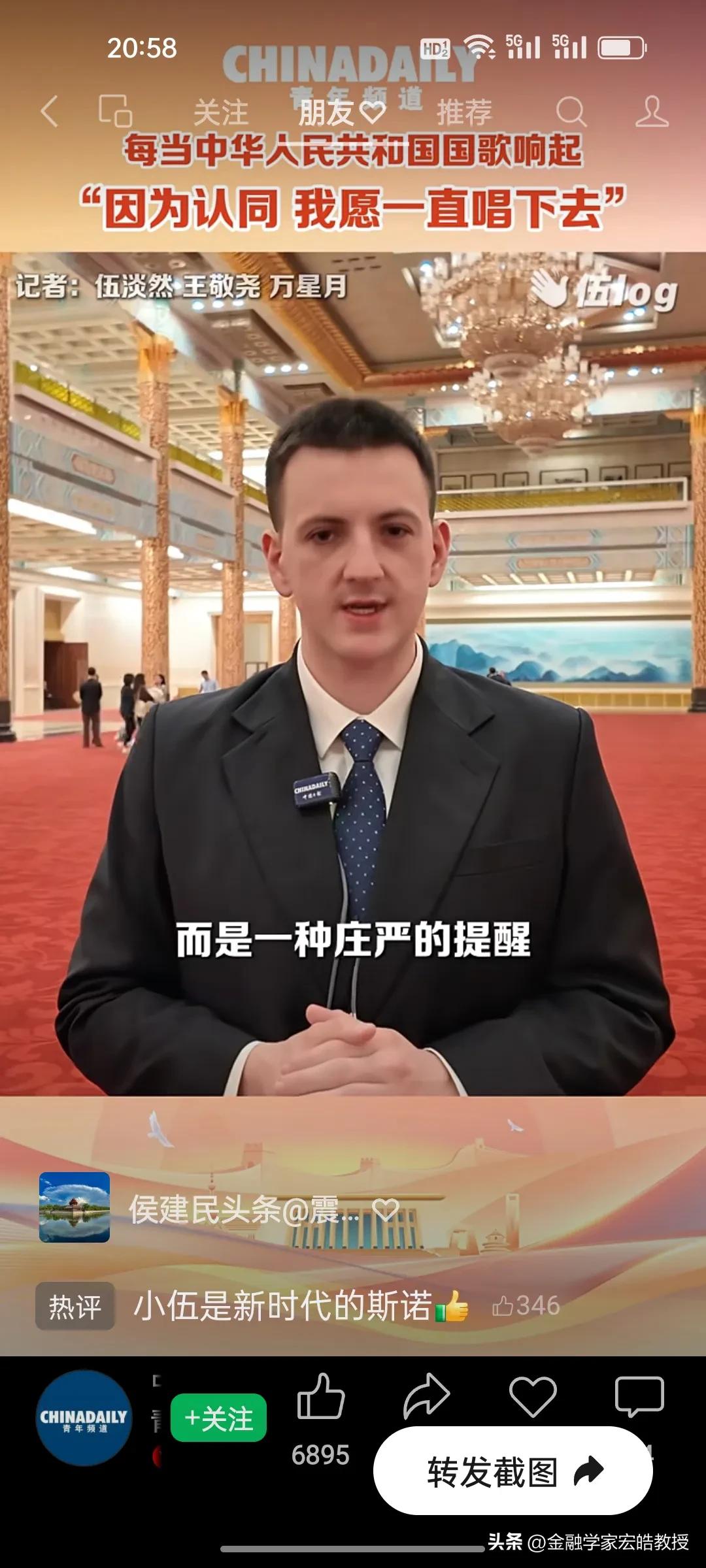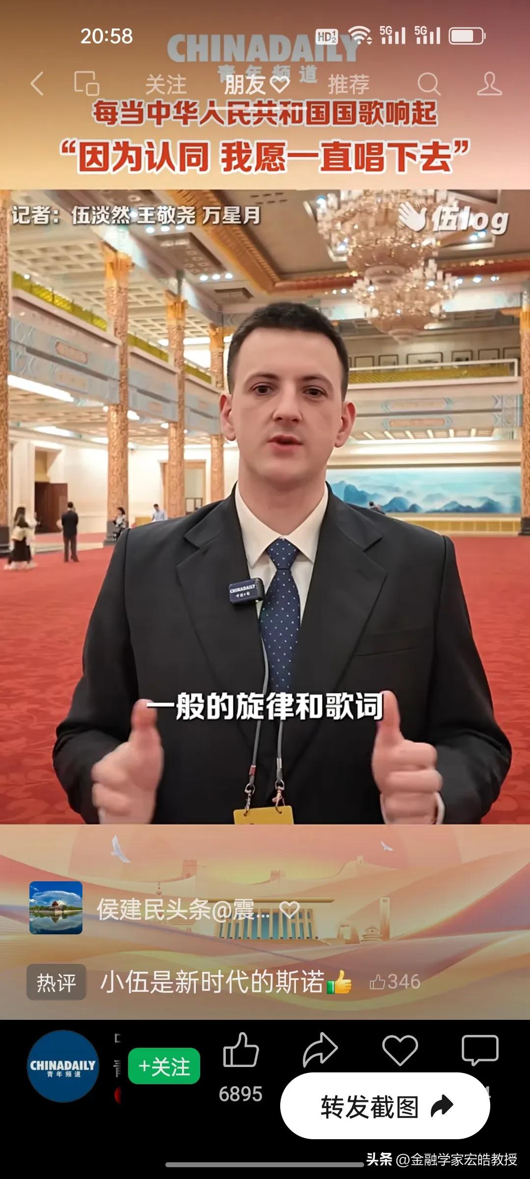 破防了!这个美国小伙记者在两会现场高唱中国国歌,估计特朗普看了都会沉默。 刚刚看到美国记者伍淡然在两会现场跟唱国歌的视频,瞬间破防!作为中国日报的外籍记者,他第二次亲历两会,坦言国歌不是普通旋律,而是庄严的提醒。 “因为认同,我愿意一直唱下去”,这句告白胜过千言万语。当他在人民大会堂和众人同唱时,共享的是同一份力量与敬意。 同样是美国人,一边是特朗普扬言扩大对伊朗的打击,一边是小伍用行动诠释对中国的认同。这或许就是最好的回答:真正的力量,从不是霸权的强硬,而是人心的凝聚与所向。