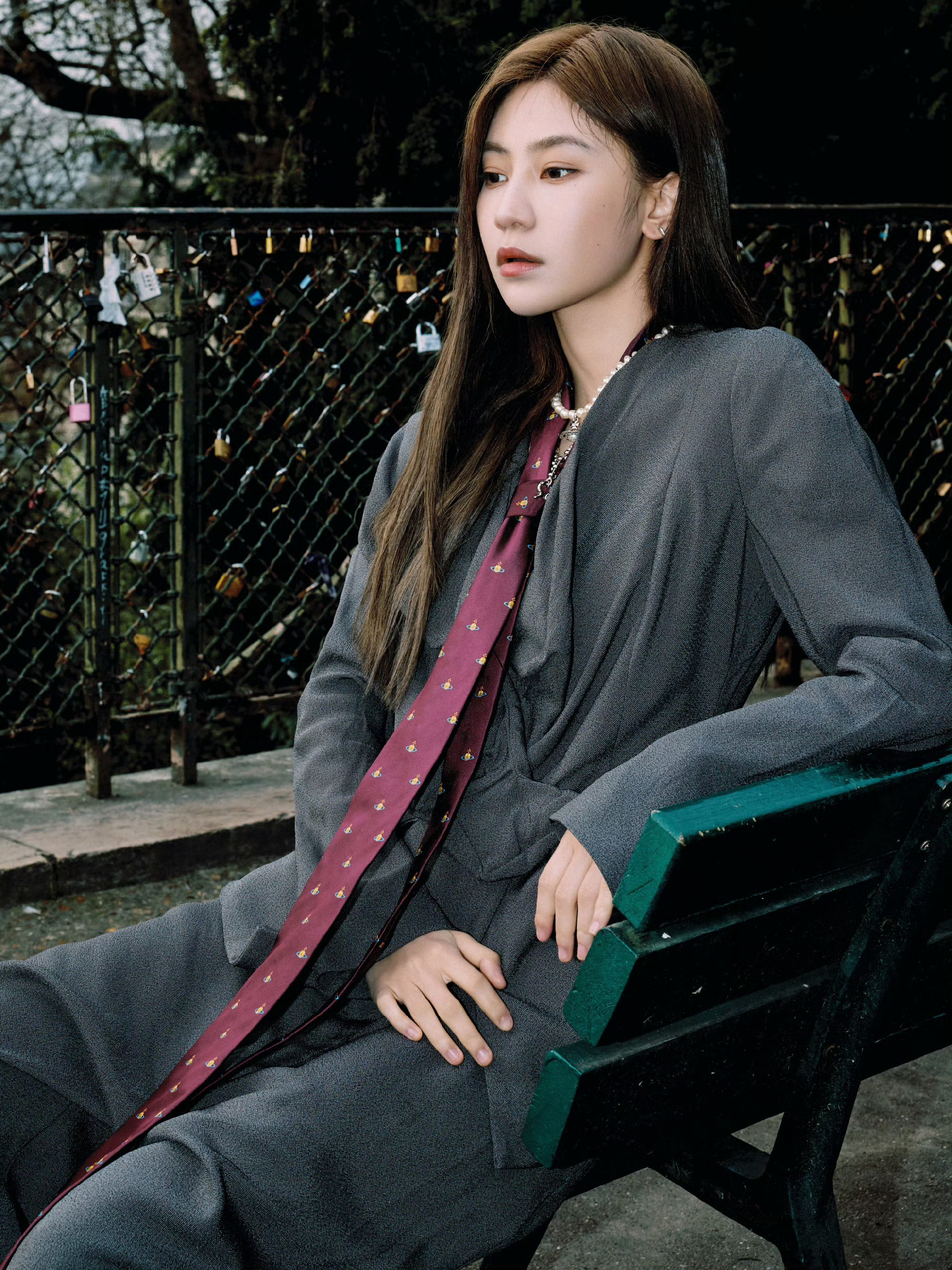 袁一琦巴黎时装周造型出图袁一琦巴黎时装周造型出图灰色v领收腰套装女王好飒脖子上的红色领带点睛之笔,期待琦琦闪耀巴黎!袁一琦灰色v领收腰套装