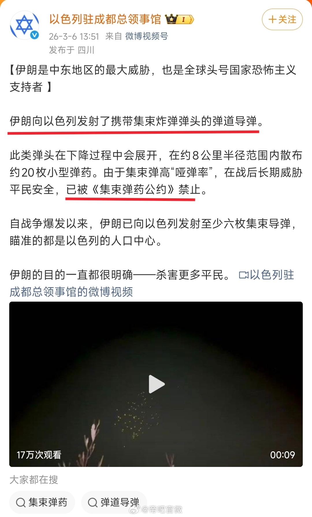 自己没加入《集束弹药公约》,自己还在用,然后指责别人用集束炸弹,这是否有些逆天了?只能你自己用?伊朗导弹袭击以色列机场