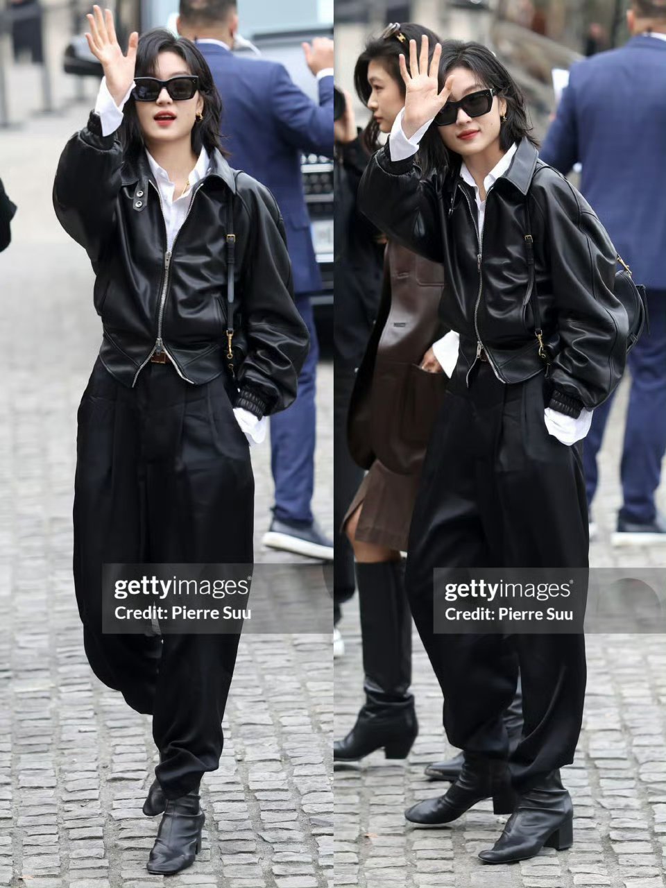 Celine大秀 CELINE大秀上孙千和裴秀智同框也太绝了吧!孙千的黑白造型飒爽利落,裴秀智一身All Black皮衣又冷又艳,两个人站在一起,氛围感直接拉满,生图比精修还能打,这才是顶奢该有的排面。
