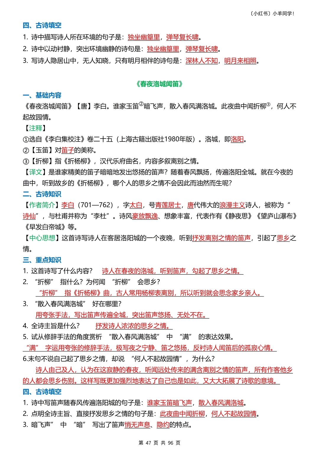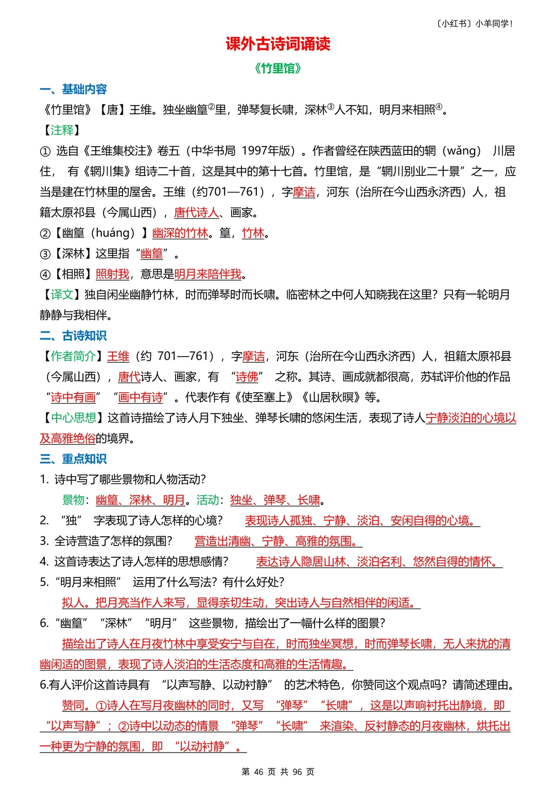 古诗文等内容更全面,作品/作者简介、理解性默写、句子赏析、字词句式等等