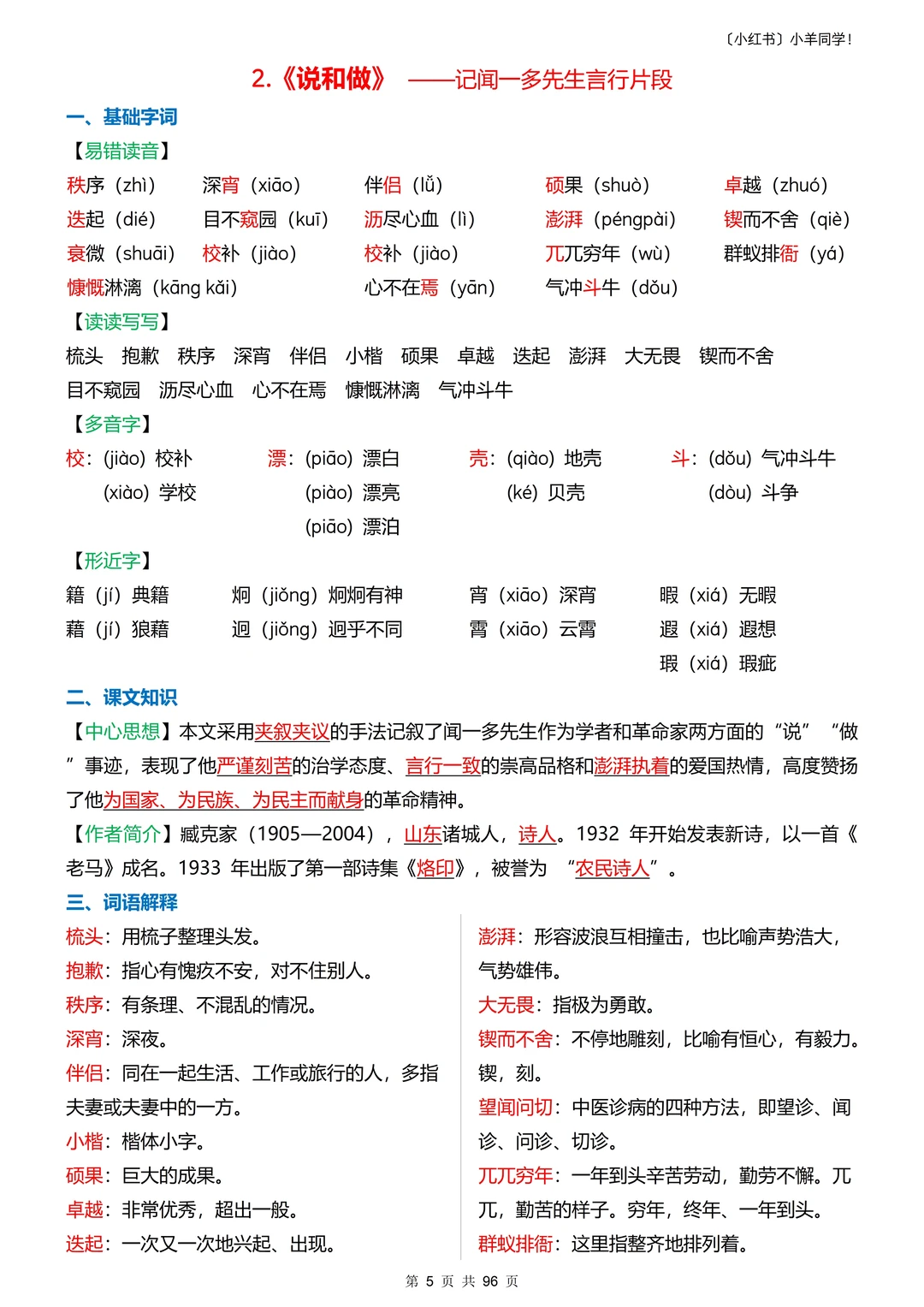 3️⃣字词解释 4️⃣课内重点知识