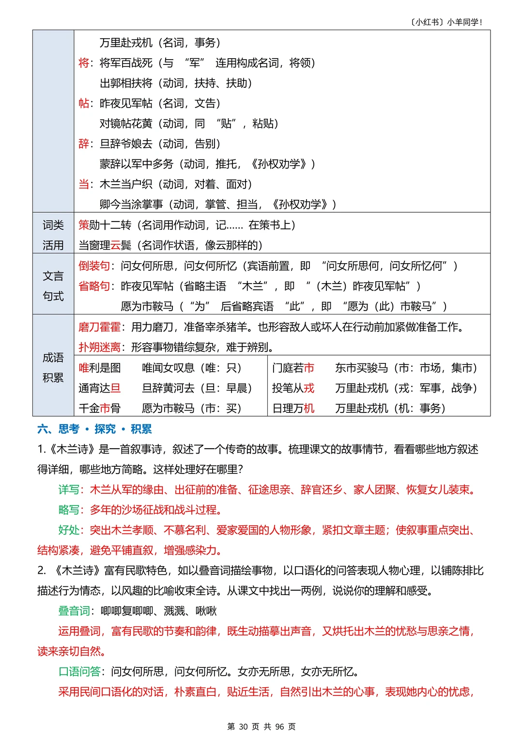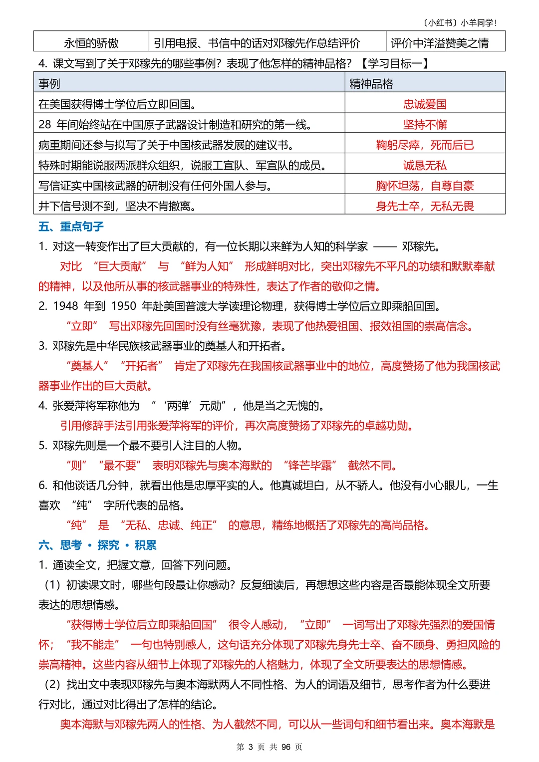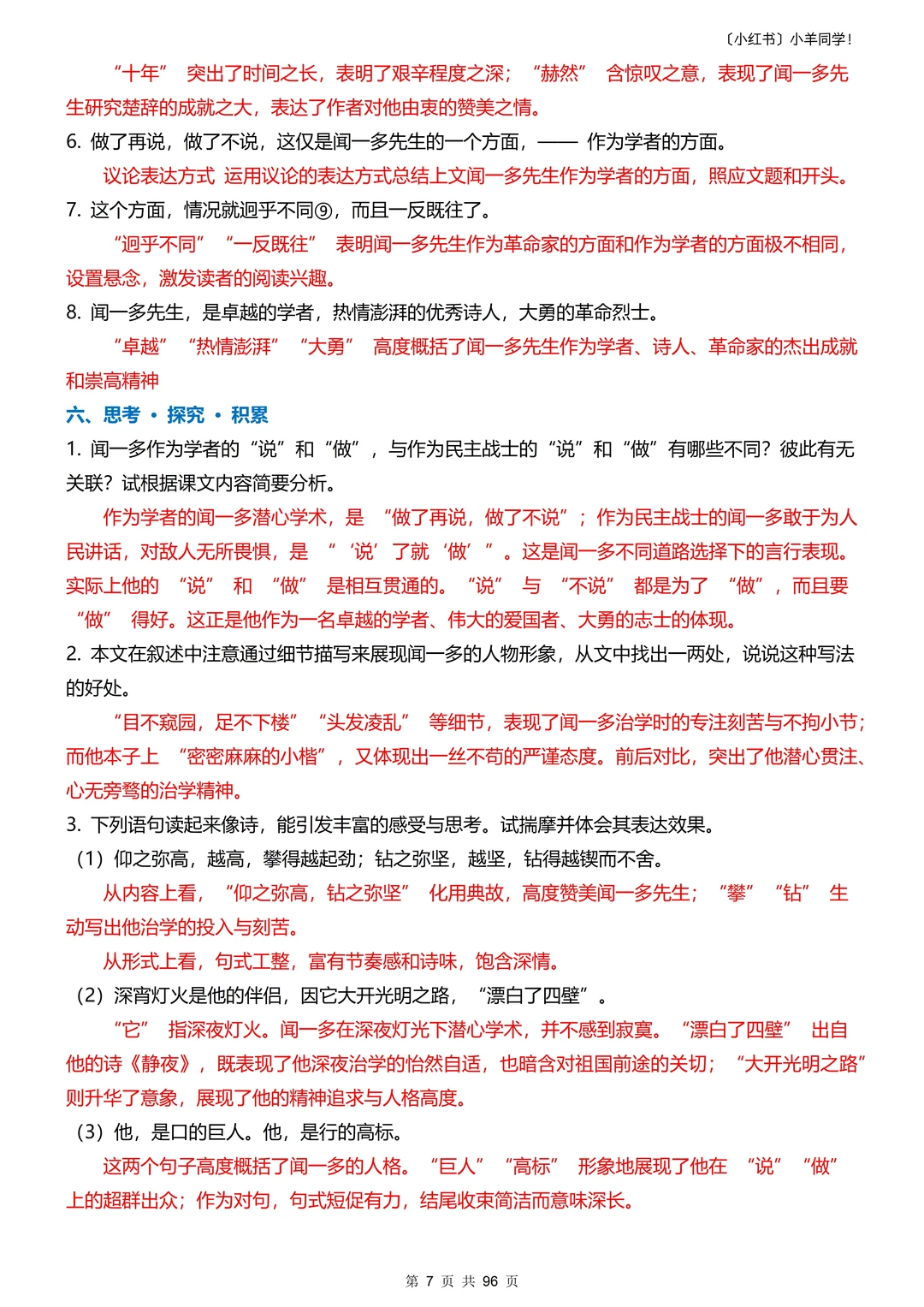 5️⃣重点句子 6️⃣思考探究积累
