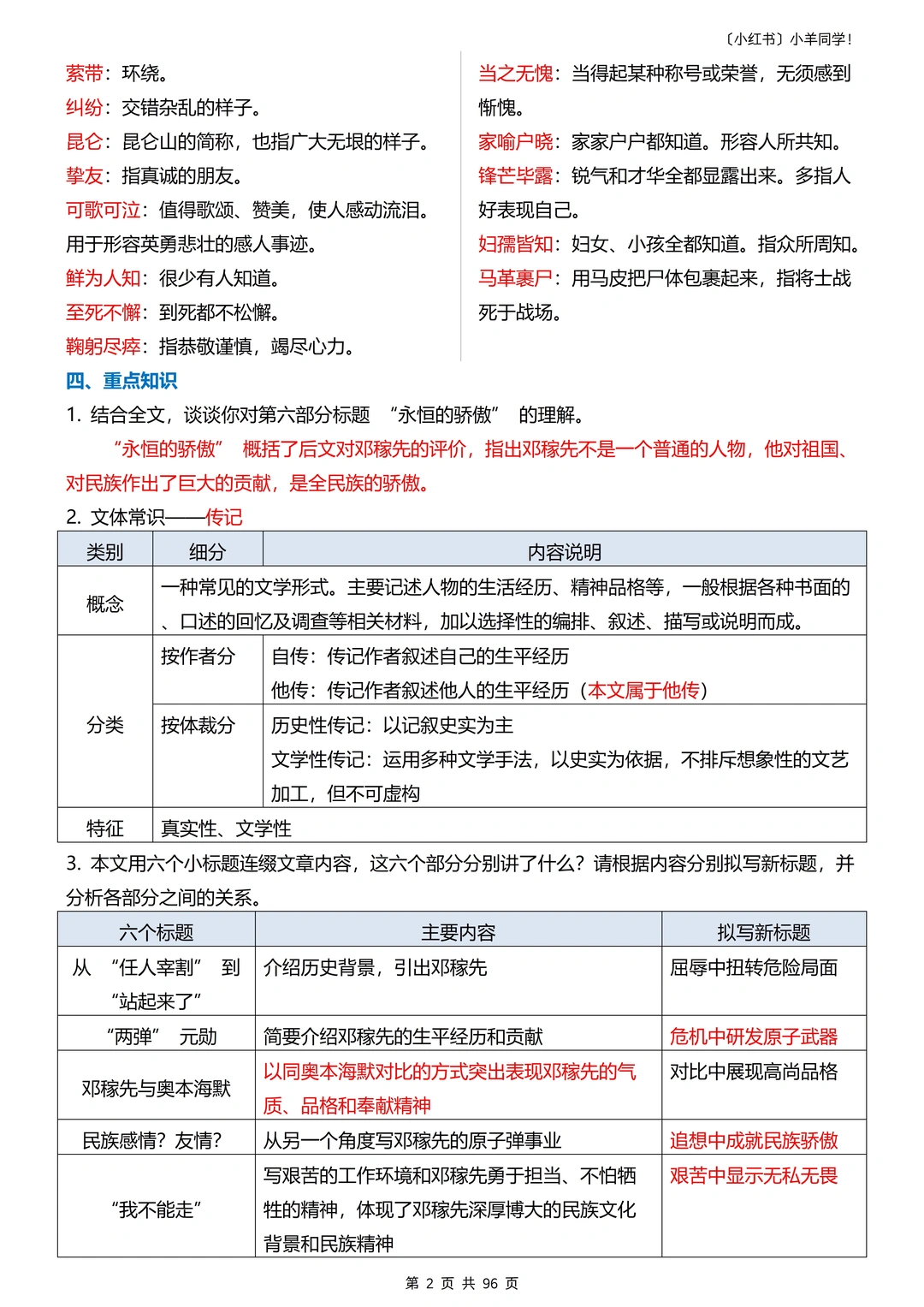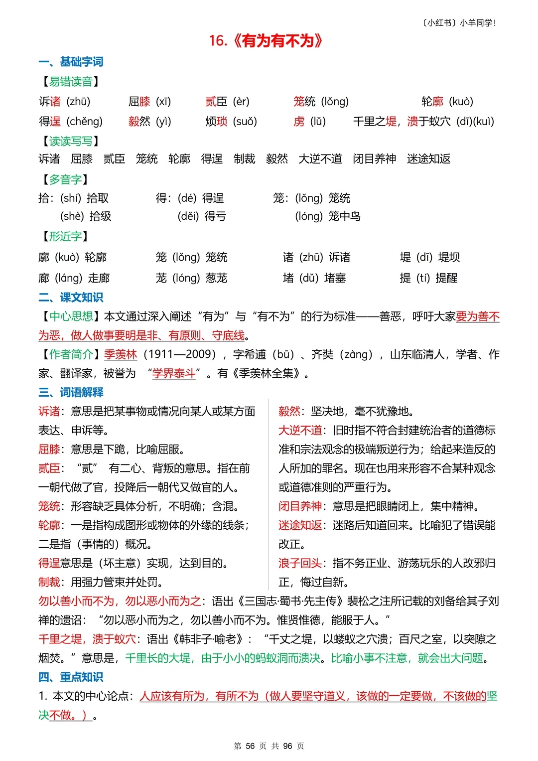 一共96页,非常全的知识点!但是小羊整理的真的超级痛苦!!!翻遍教辅,整理这份资料期间无数次想放弃的念头,又一再的决定继续坚持!!终于搞定了!!!大哭~