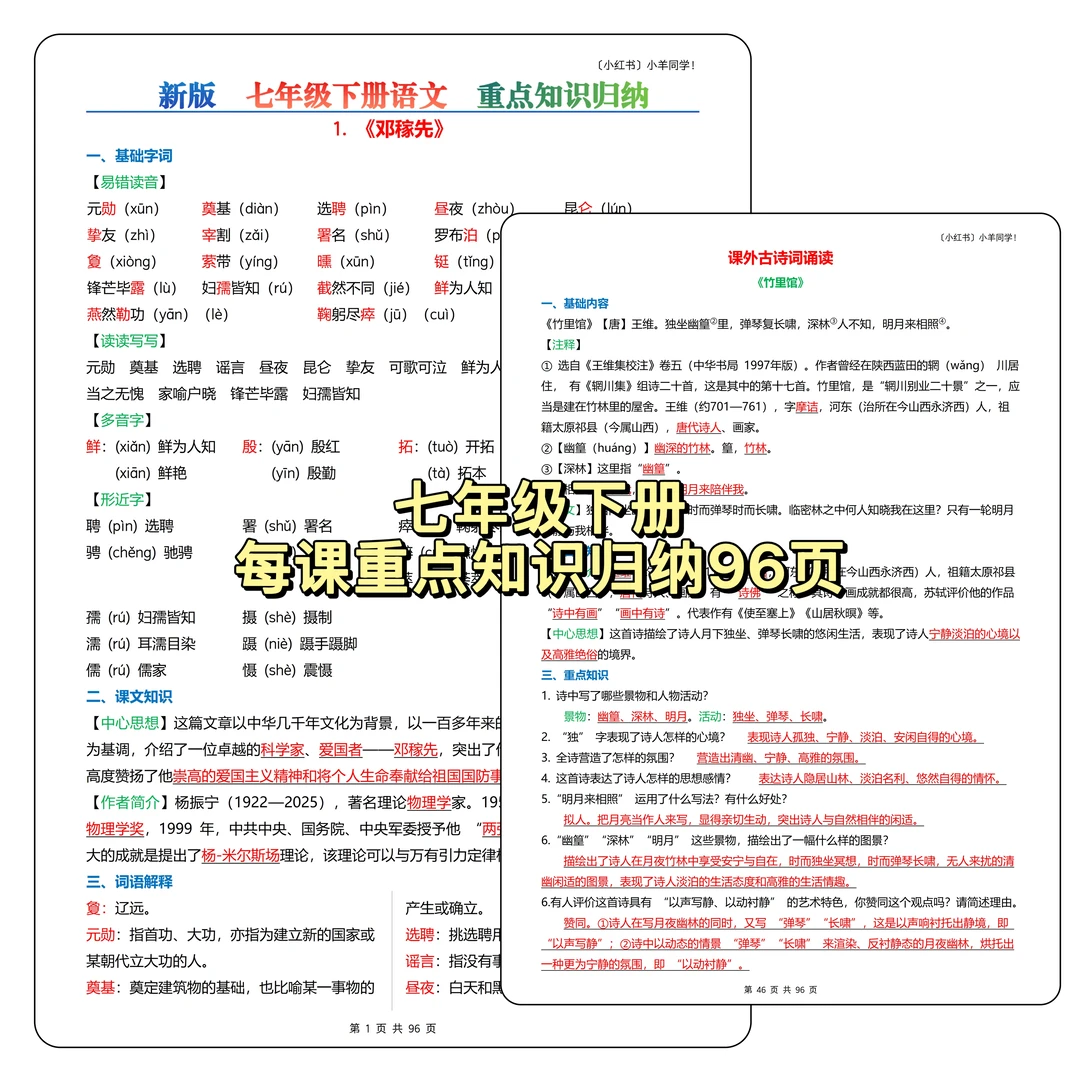家有七年级娃的宝妈!孩子语文是不是没有小学成绩好了??提分特别困难??别急,这份每课重点知识归纳,让娃每天读 10分钟,轻松抓分!