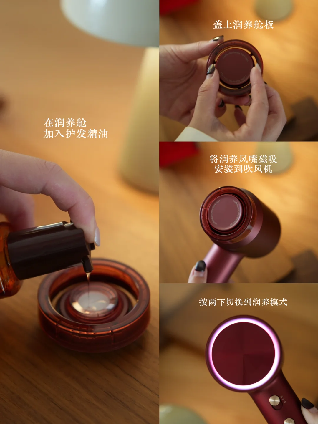 吹发前在润养舱里滴上护发精油