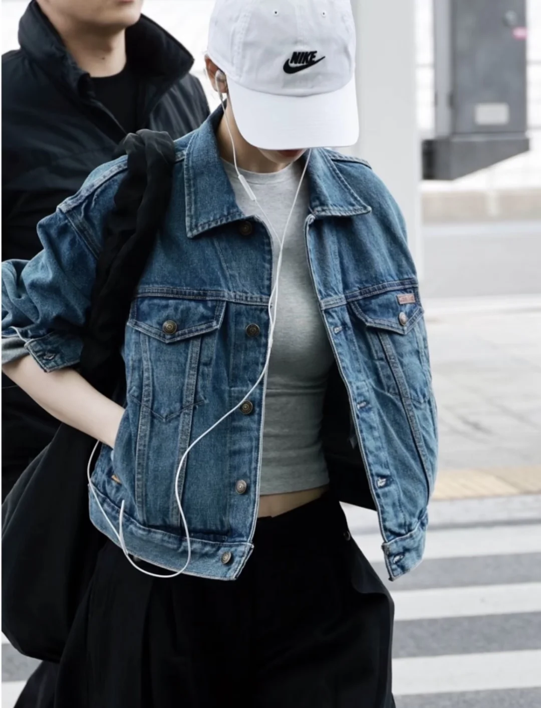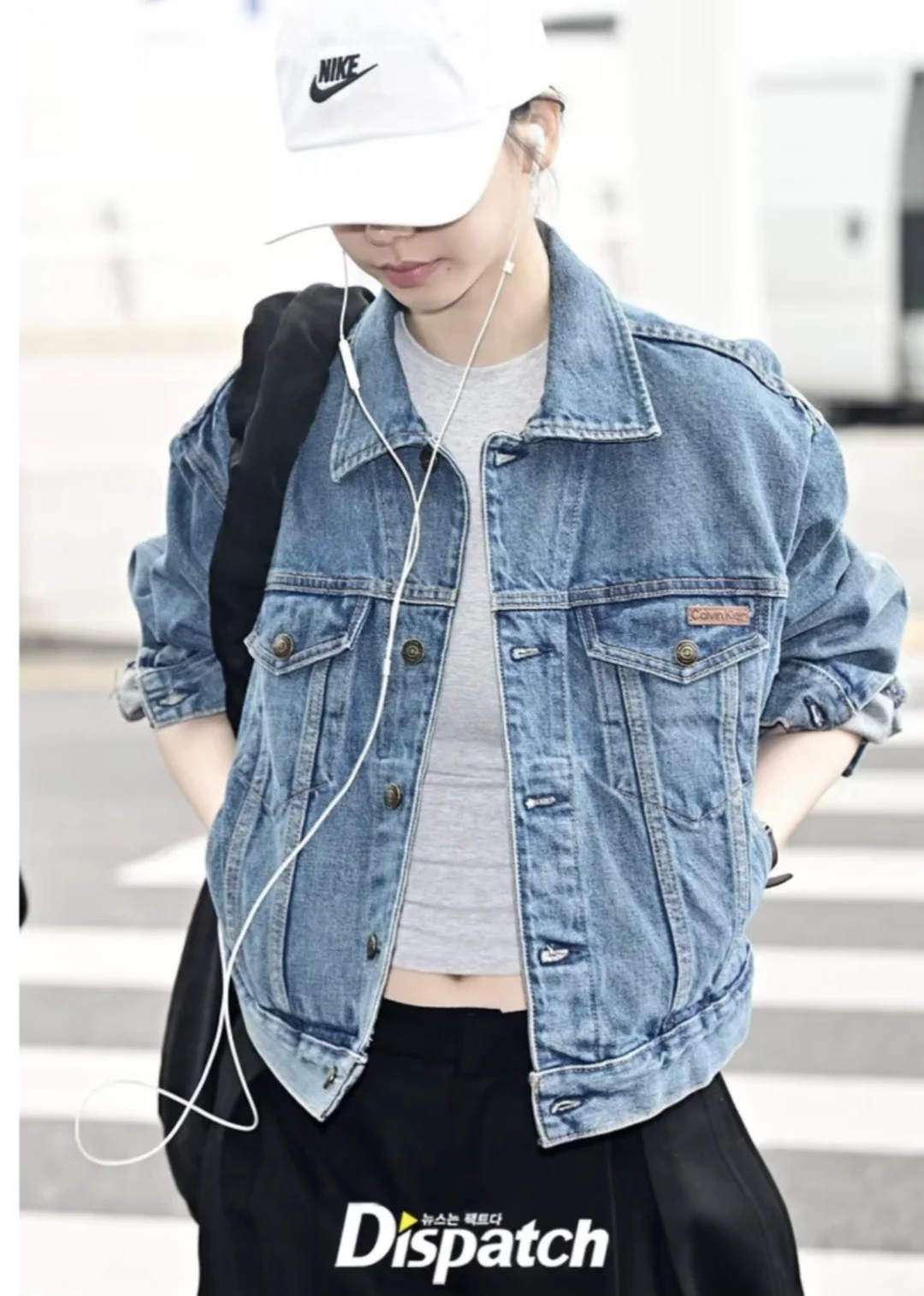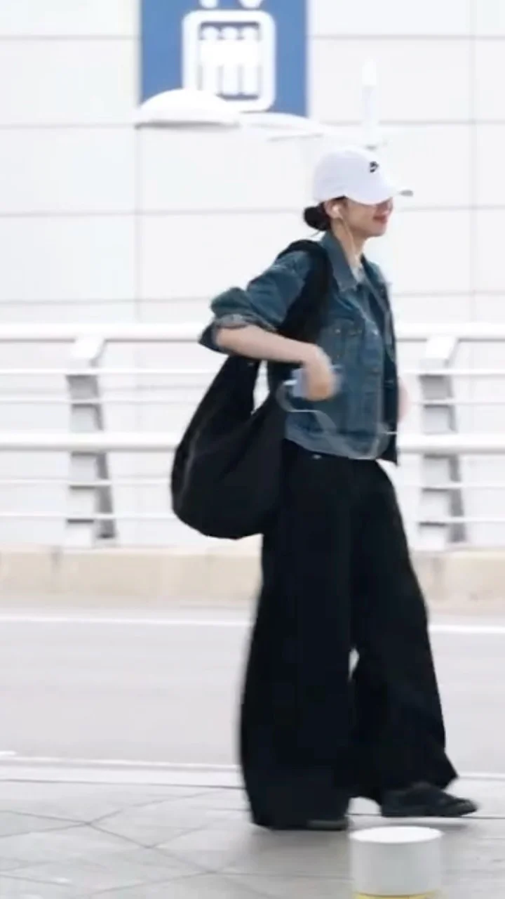 柳智敏今日私服,这套私服好日系啊,简单的牛仔外套配阔腿裤与薄底鞋,再挎一个大布包,松弛又日系的早春Look,好看! aespa 柳智敏 图源 网络 侵权删