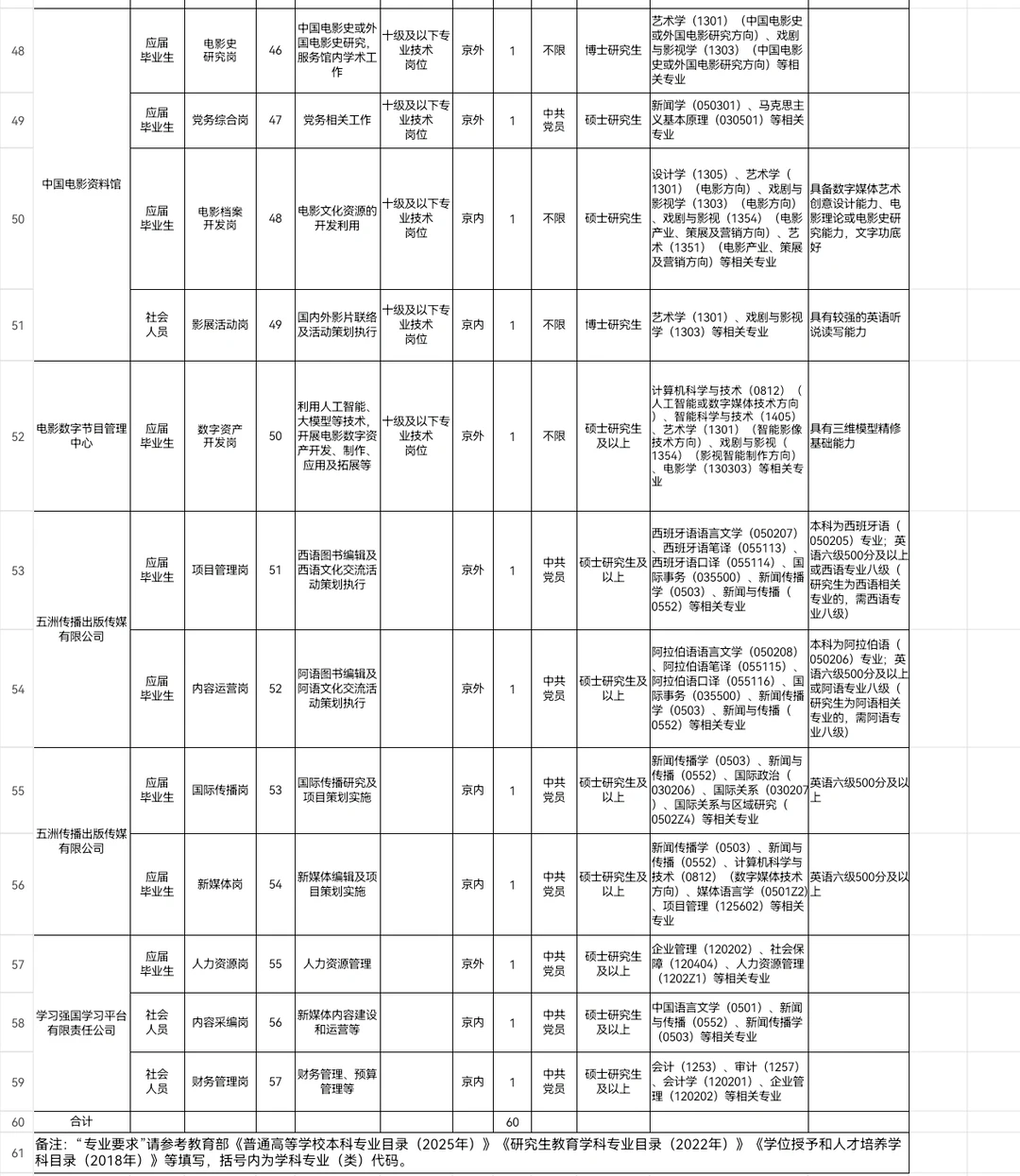 ✅中宣部所属单位2026校招开始啦,中央宣传部直属单位2026年度拟公开招聘60名工作人员