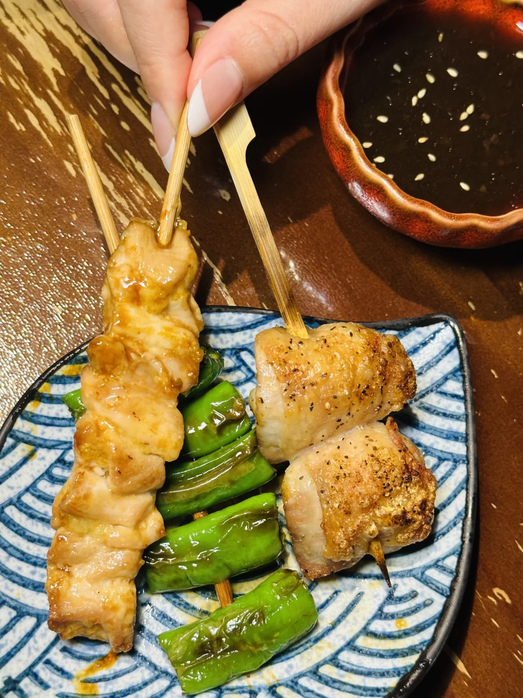 店员给推荐的「隐」陈酿梅酒🍶, 入口是温润的梅子果香,完全不冲喉,度数友好很适合女生微醺。 酒体清澈透亮,带着自然的陈酿回甘,冰饮之后更清爽。适合搭配烧鸟,解腻又提鲜,不愧是店里的招牌酒!桌桌必点的👍