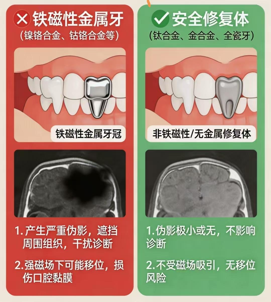 口腔里有金属牙是不是一定不能做核磁了呢? 去年时,我因为颈椎病导致晕倒,医生建